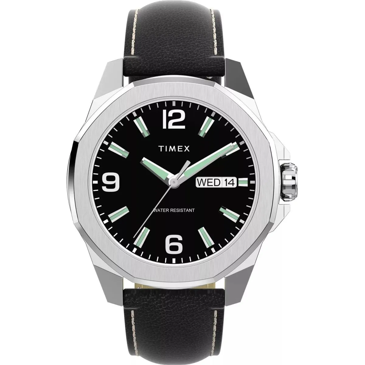 TIMEX Timex Essex Day & Date TW2W92900 Męski zegarek srebrny na czarnym pasku