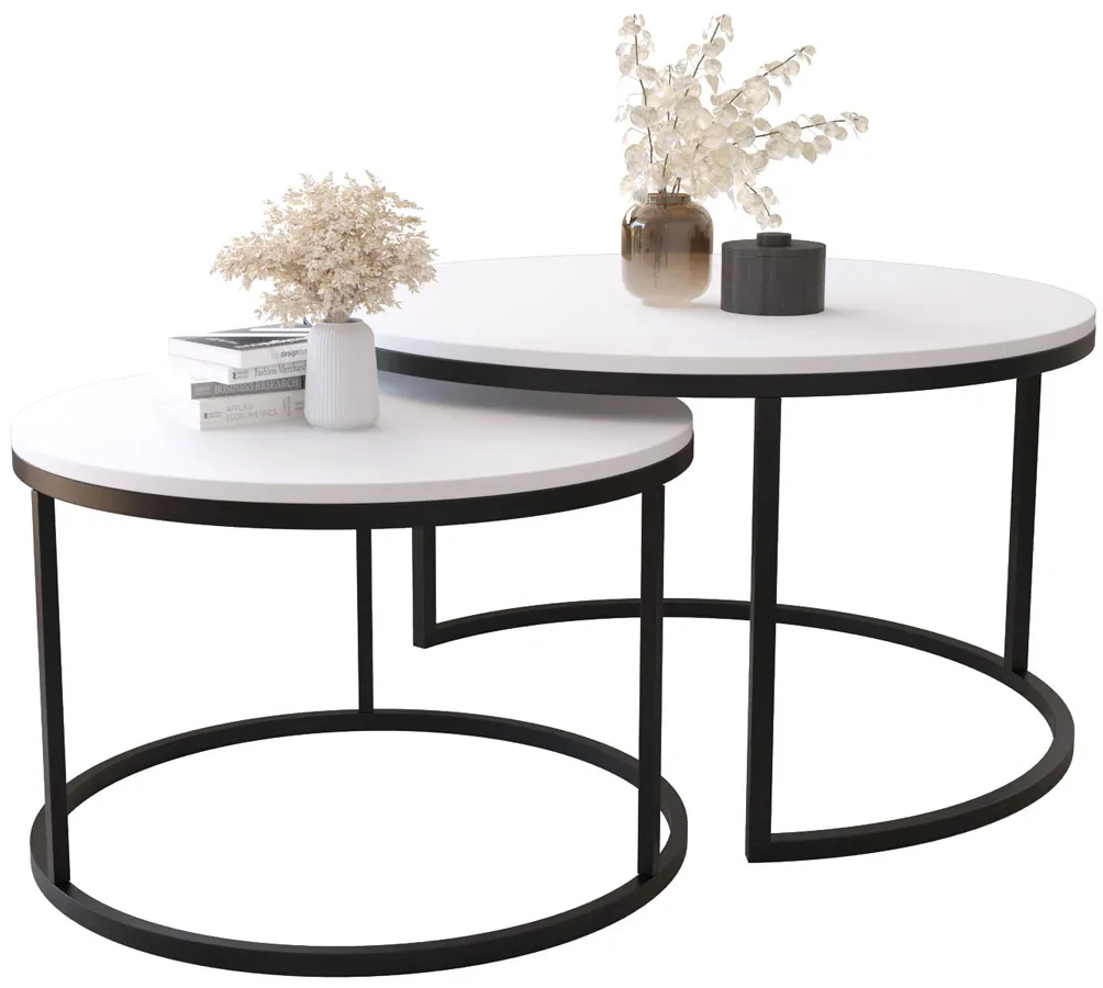 Industrialne stoliki kawowe biały + czarny - Satell 3X