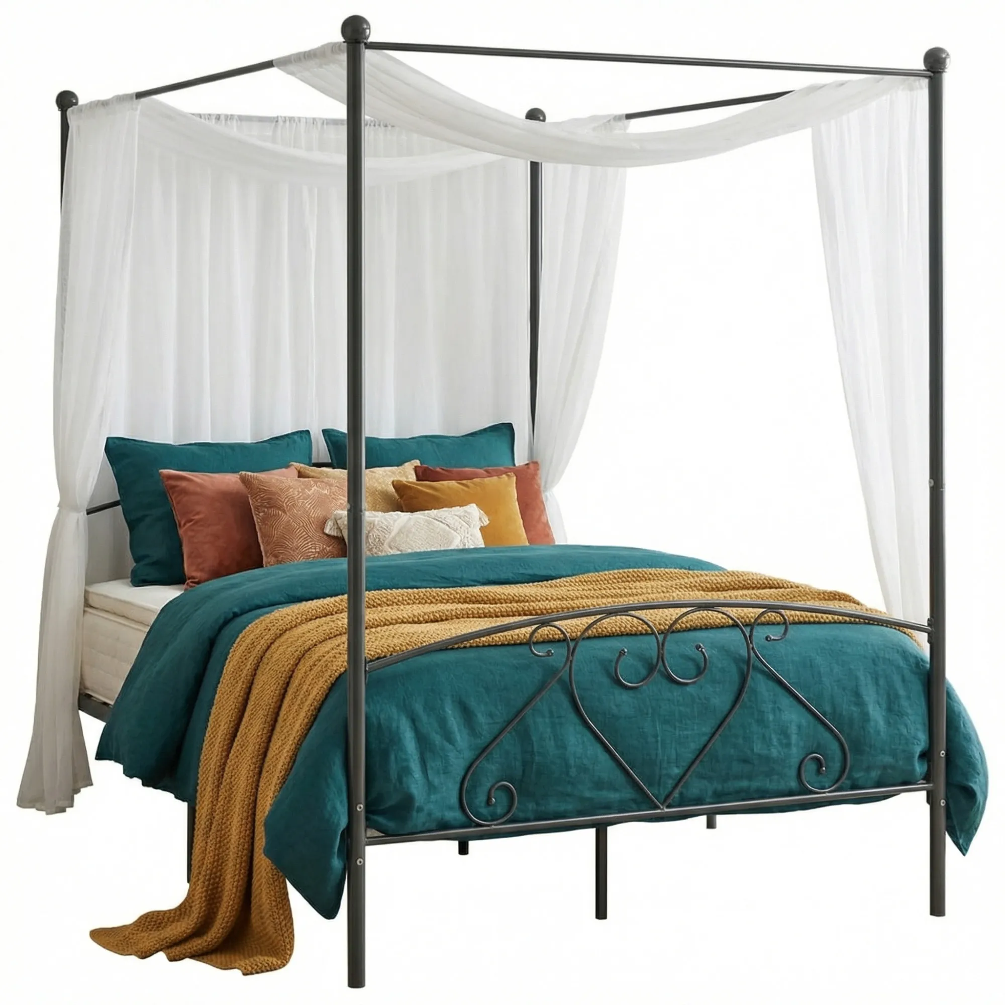 Szare metalowe łóżko z baldachimem 180x200 cm - Nila