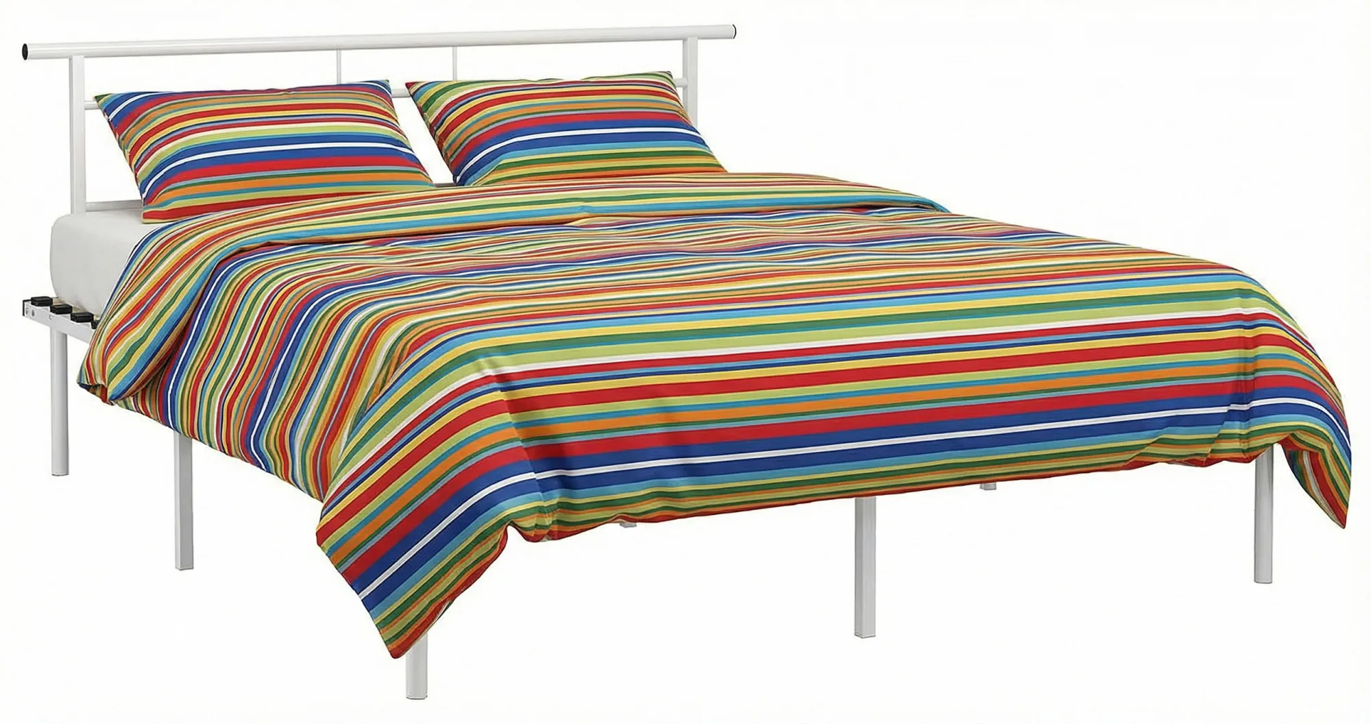 Białe metalowe łóżko małżeńskie 140x200 cm - Barold