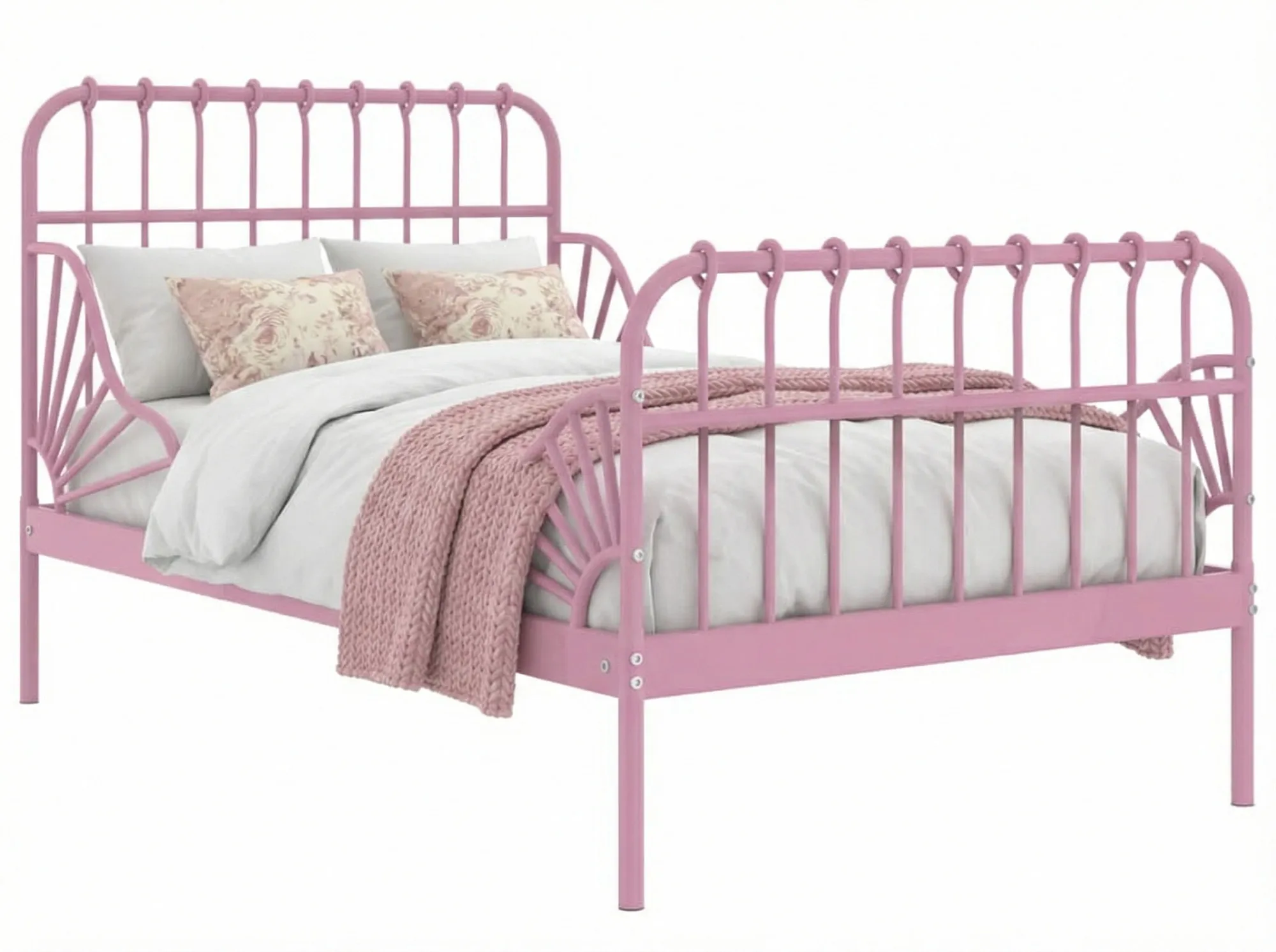 Różowe metalowe łóżko rosnące z dzieckiem 80x130/200 cm - Kasja