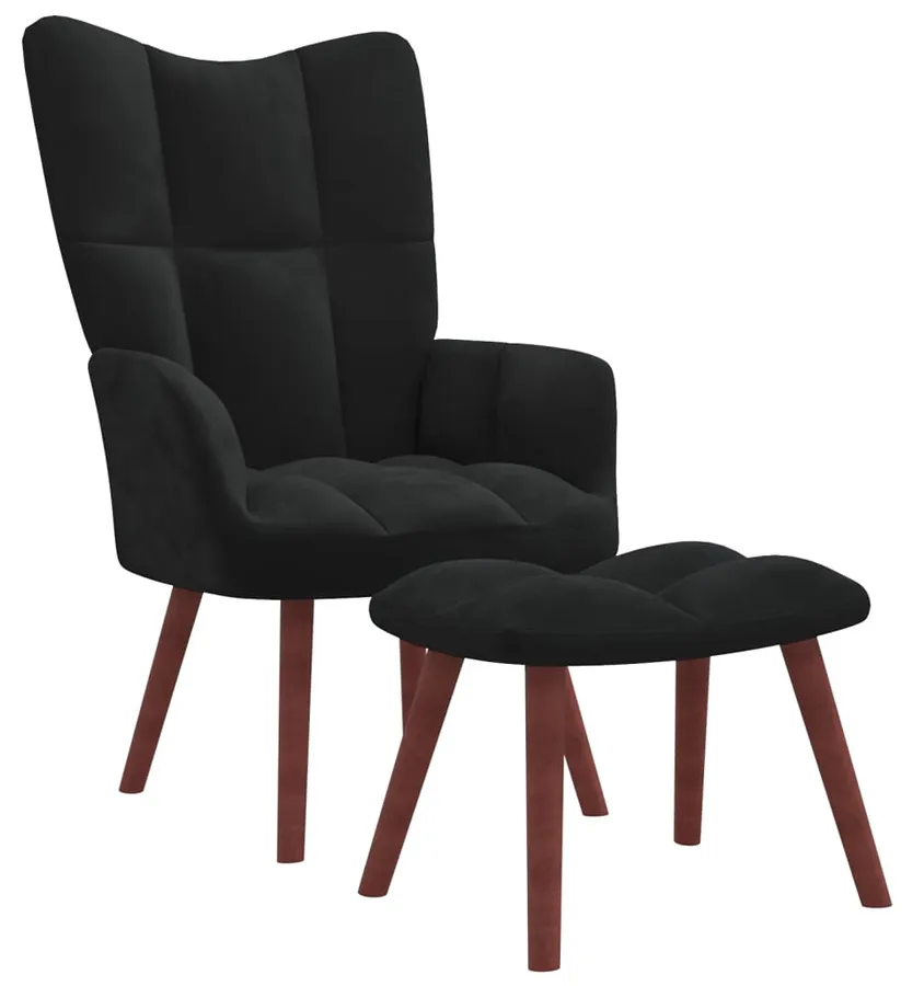 Czarny welurowy fotel wypoczynkowy z podnóżkiem - Debora
