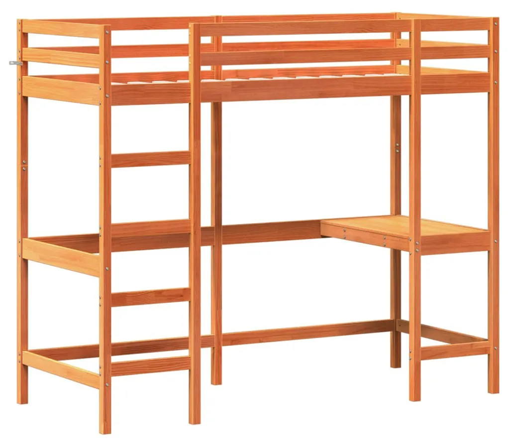 Brązowe łóżko na antresoli z biurkiem 100x200 - Elba 7X