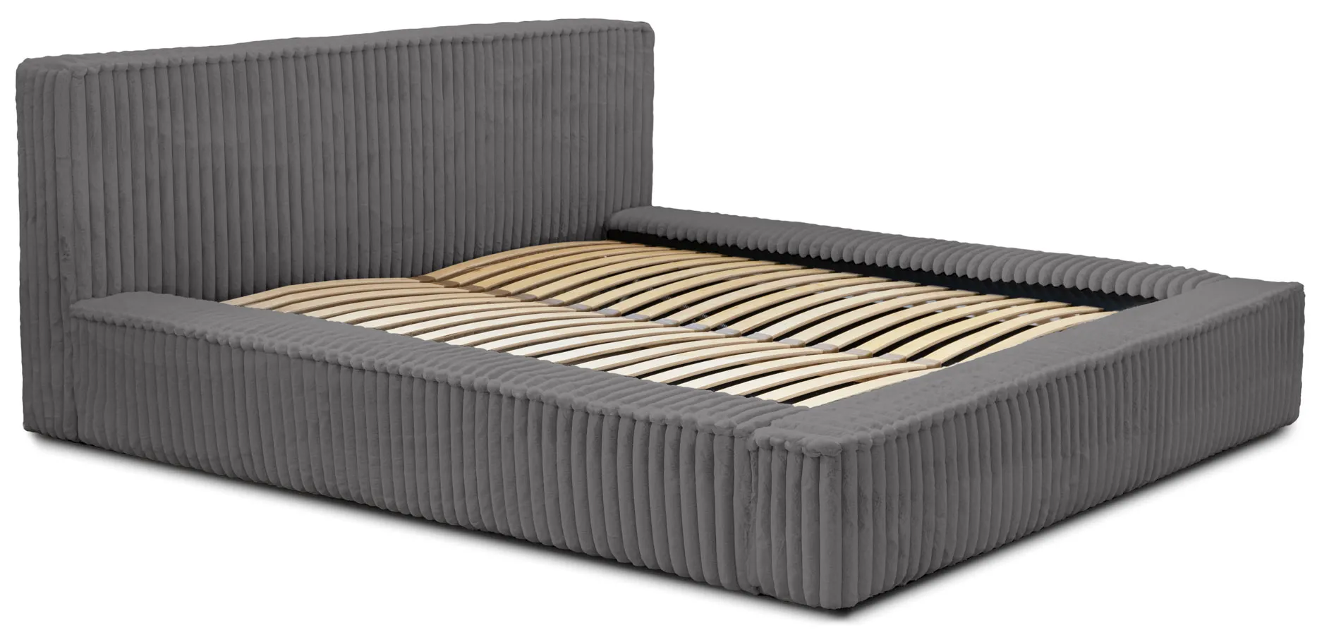 Szare sztruksowe łóżko tapicerowane z zagłówkiem Sanser - 3 rozmiary
