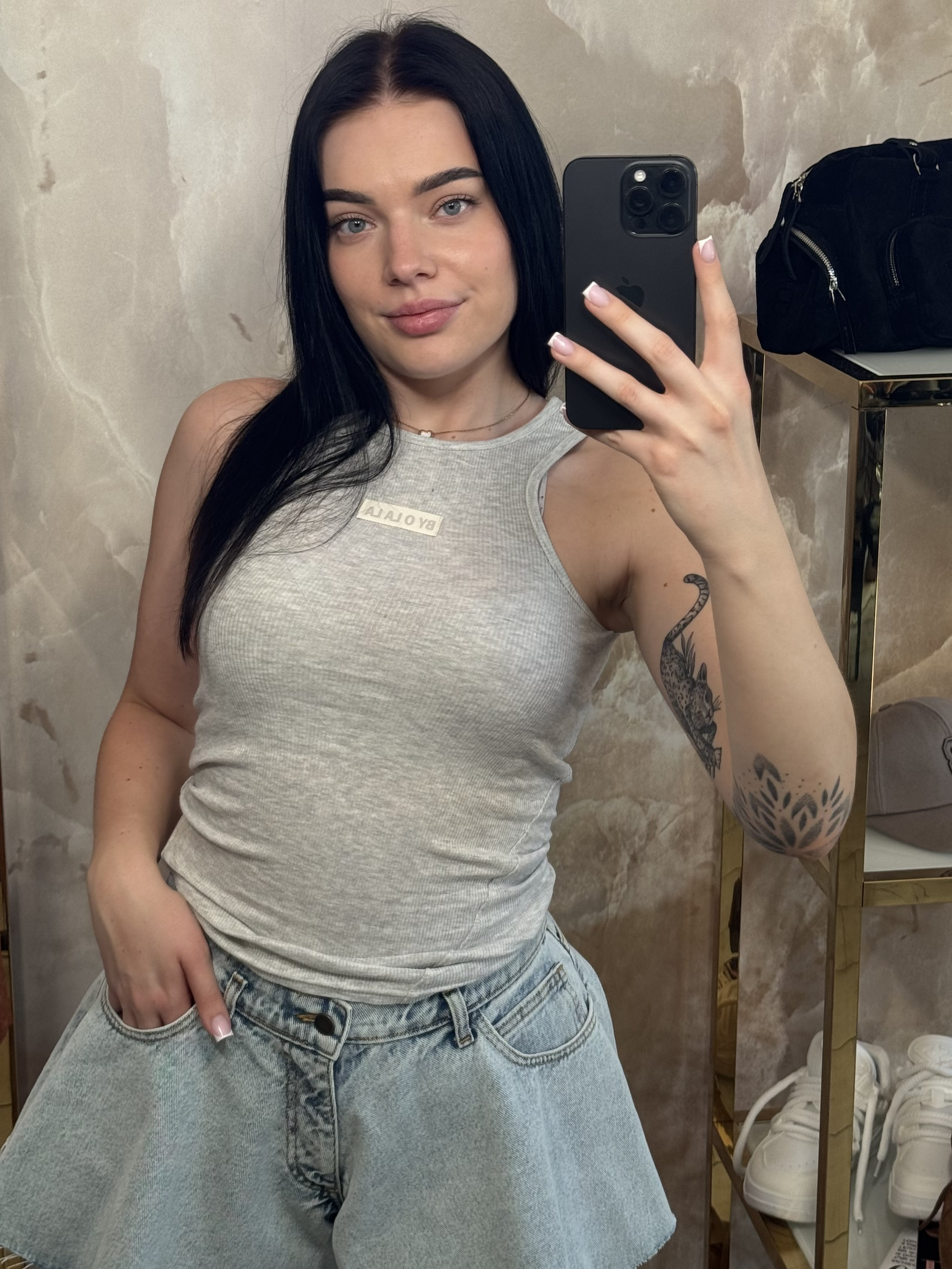 BY O LA LA...! BLUZKA BOKSERKA LOGO SZARA