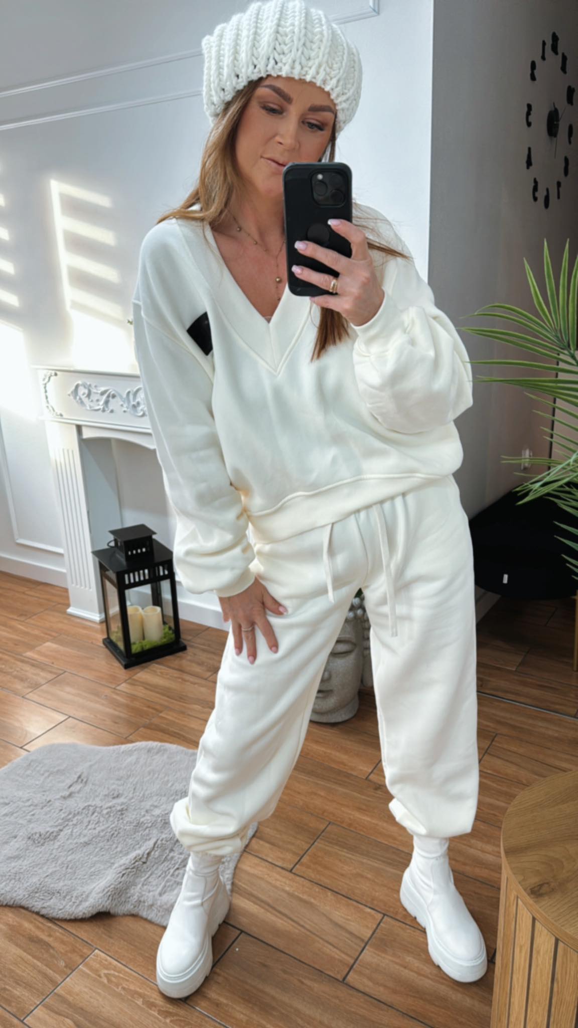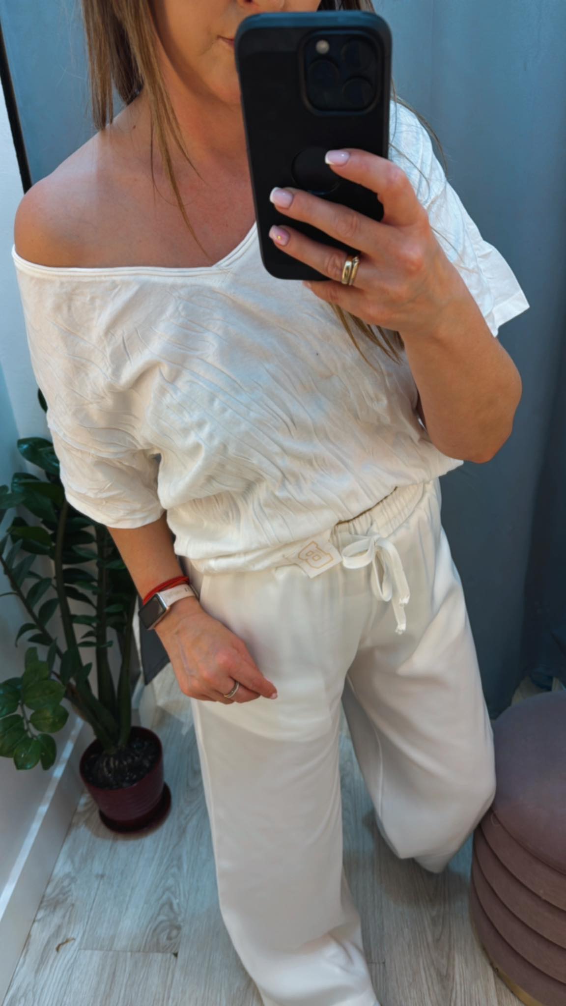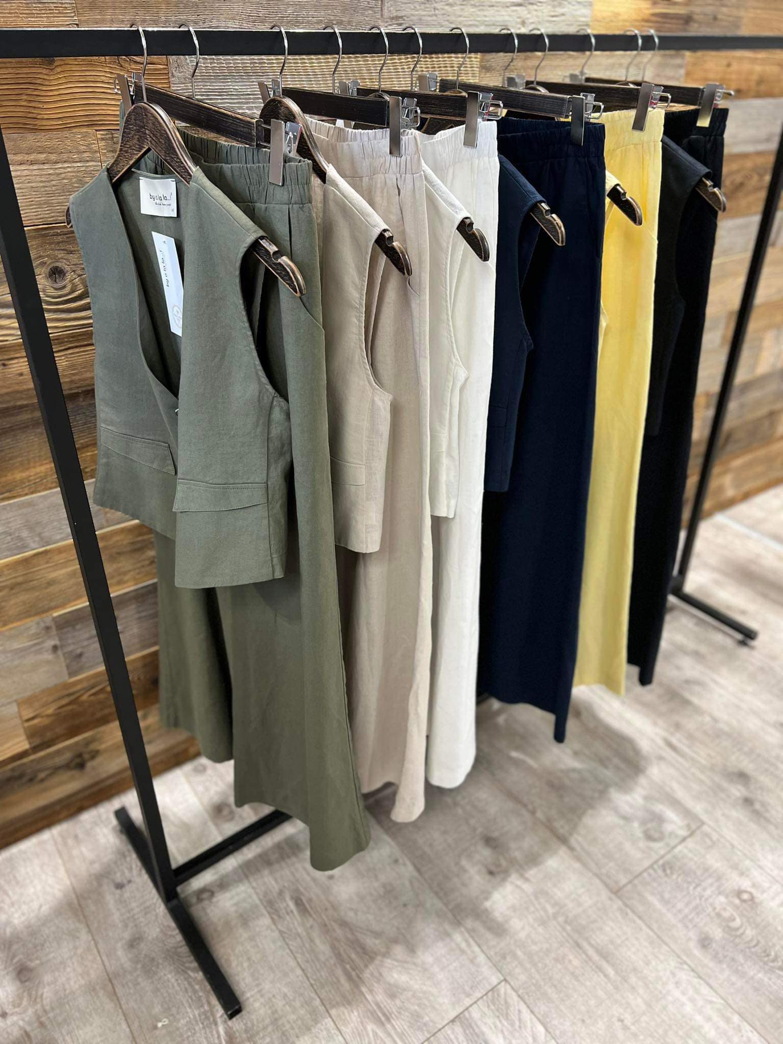 BY O LA LA...! LNIANY KOMPLET KAMIZELKA + SPODNIE ŚMIETANA