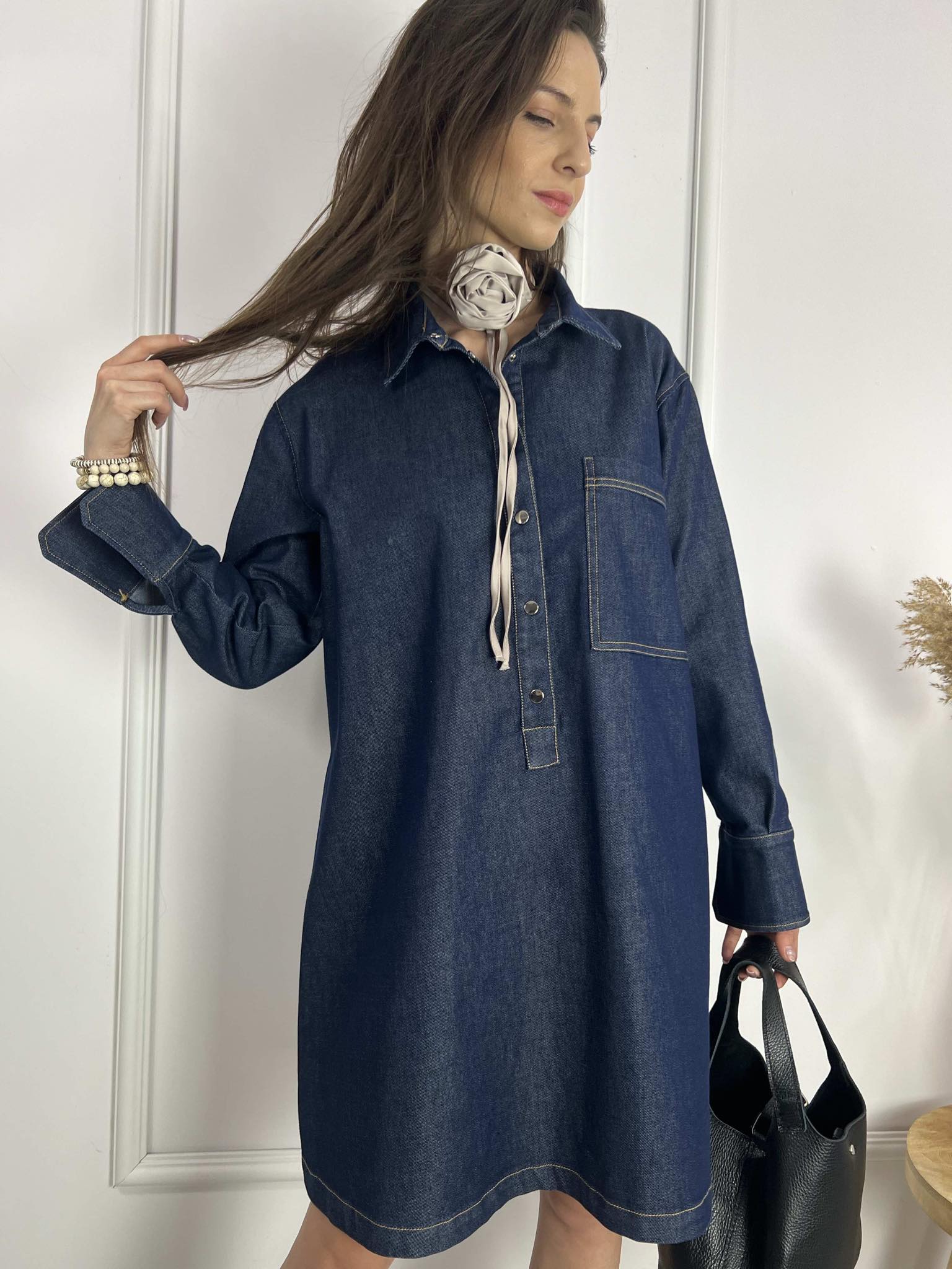 BY O LA LA! JEANSOWA TUNIKA SUKIENKA Z NAPAMI NIEBIESKA
