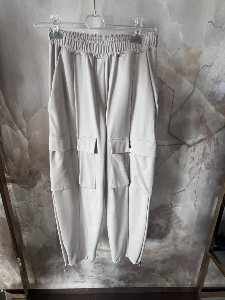 BY O LA LA...! SPODNIE Z PODWÓJNYMI KIESZENIAMI ZIMNY BEŻ