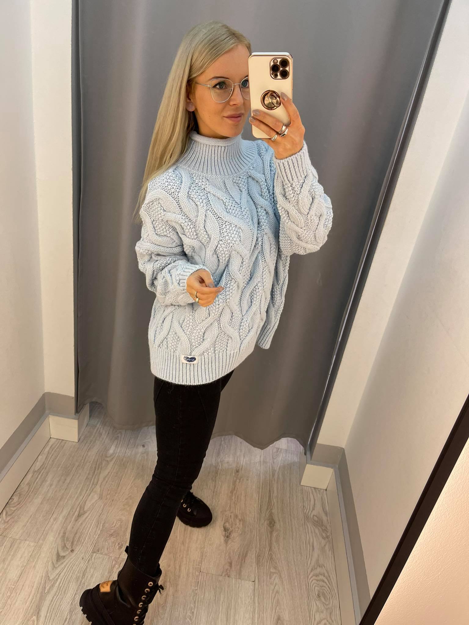 BY O LA LA.. ! OVERSIZOWY SWETER Z GOLFEM BŁĘKIT