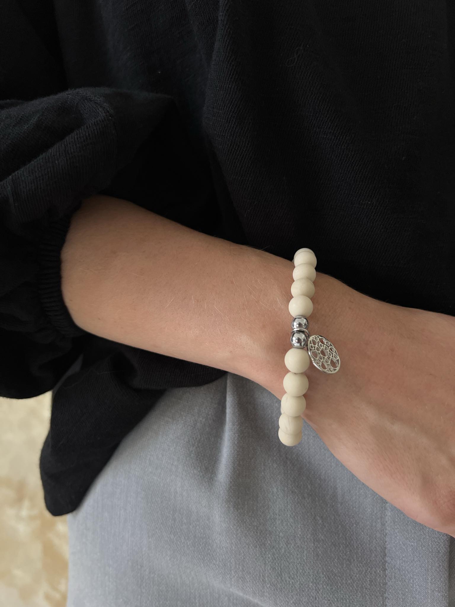 BY O LA LA ! BRANSOLETKA KAMIEŃ RZECZNY NUDE/SREBRO