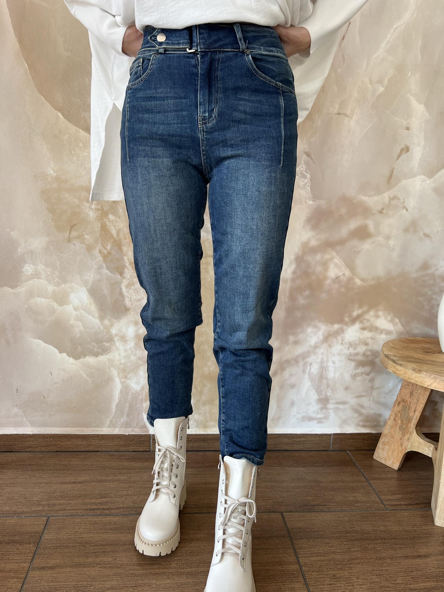 BY O LA LA! SPODNIE JEANSY HIGH WAIST NIEBIESKIE