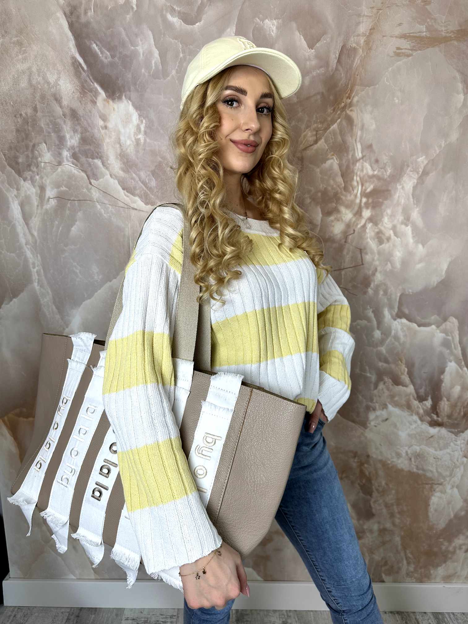 BY O LA LA ! CZAPKA Z DASZKIEM BEJSBOLÓWKA 'B' CAFFE LATTE