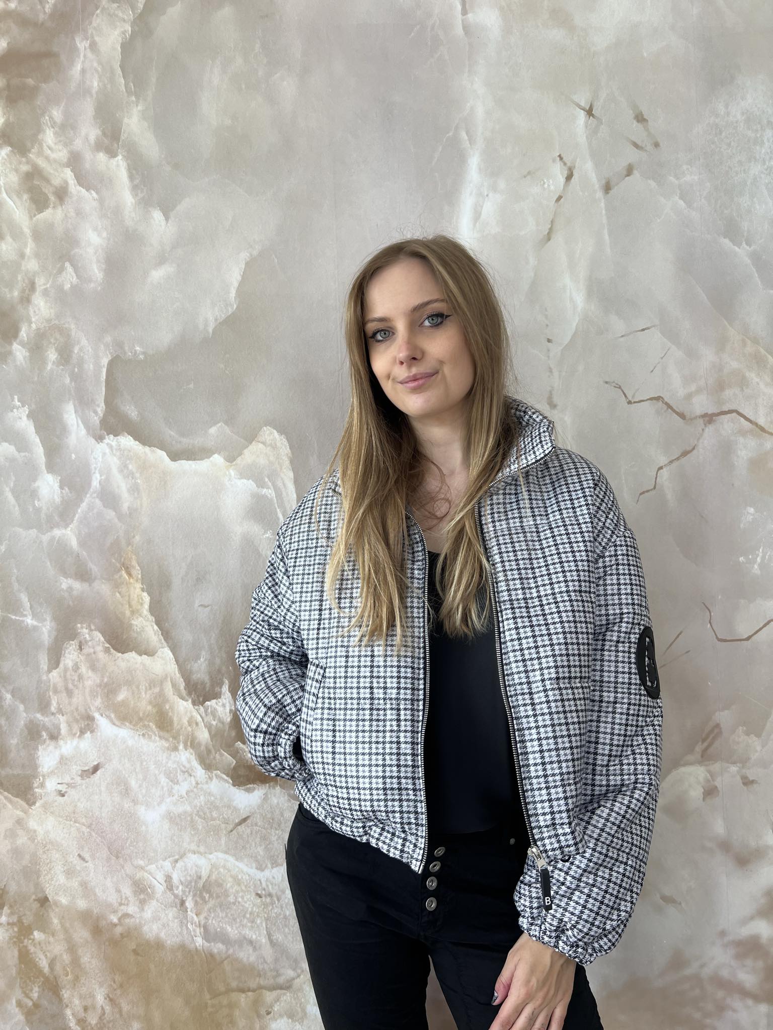 BY O LA LA! KRÓTKA KURTKA PIKOWANA "B" KRATA MOONLIGHT/CZERŃ