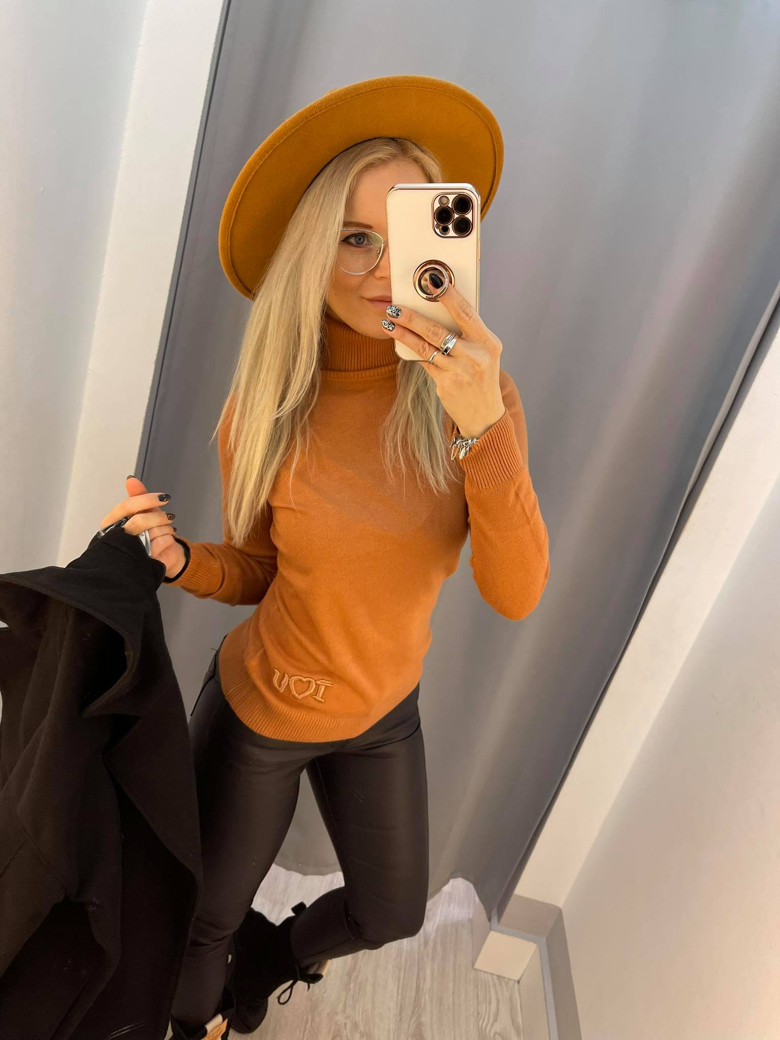 BY O LA LA...! SWETER GOLF Z NASZYWKĄ CAMEL