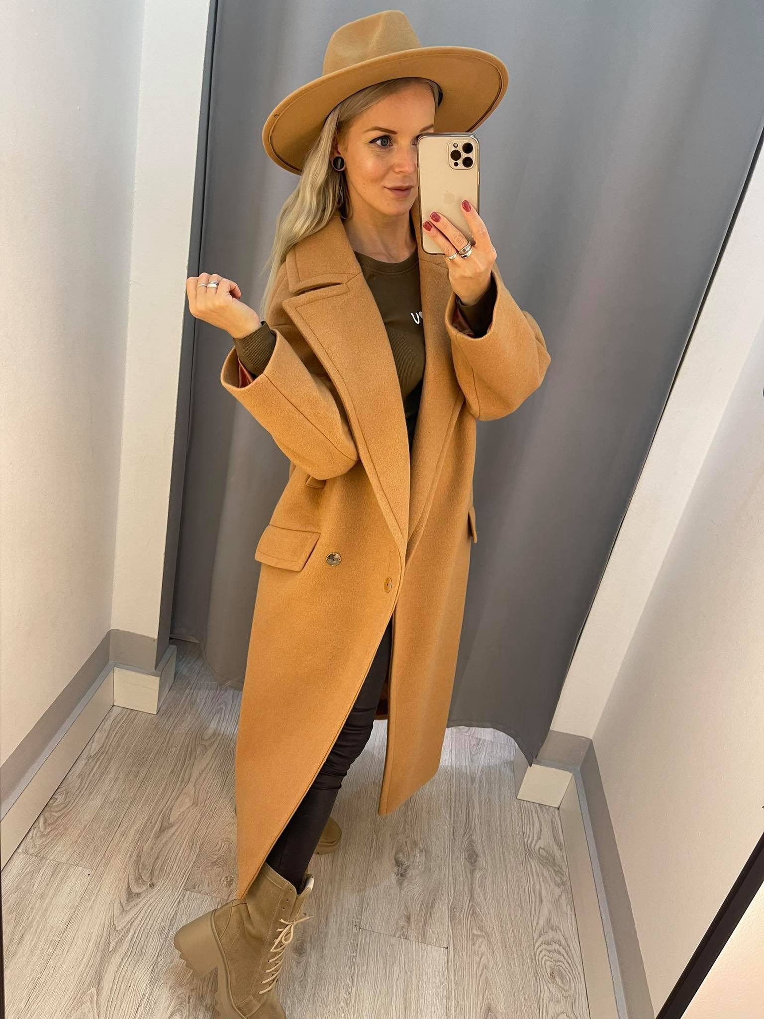 BY O LA LA...! DŁUGI PŁASZCZ TRENCZ OVERSIZE CAMEL