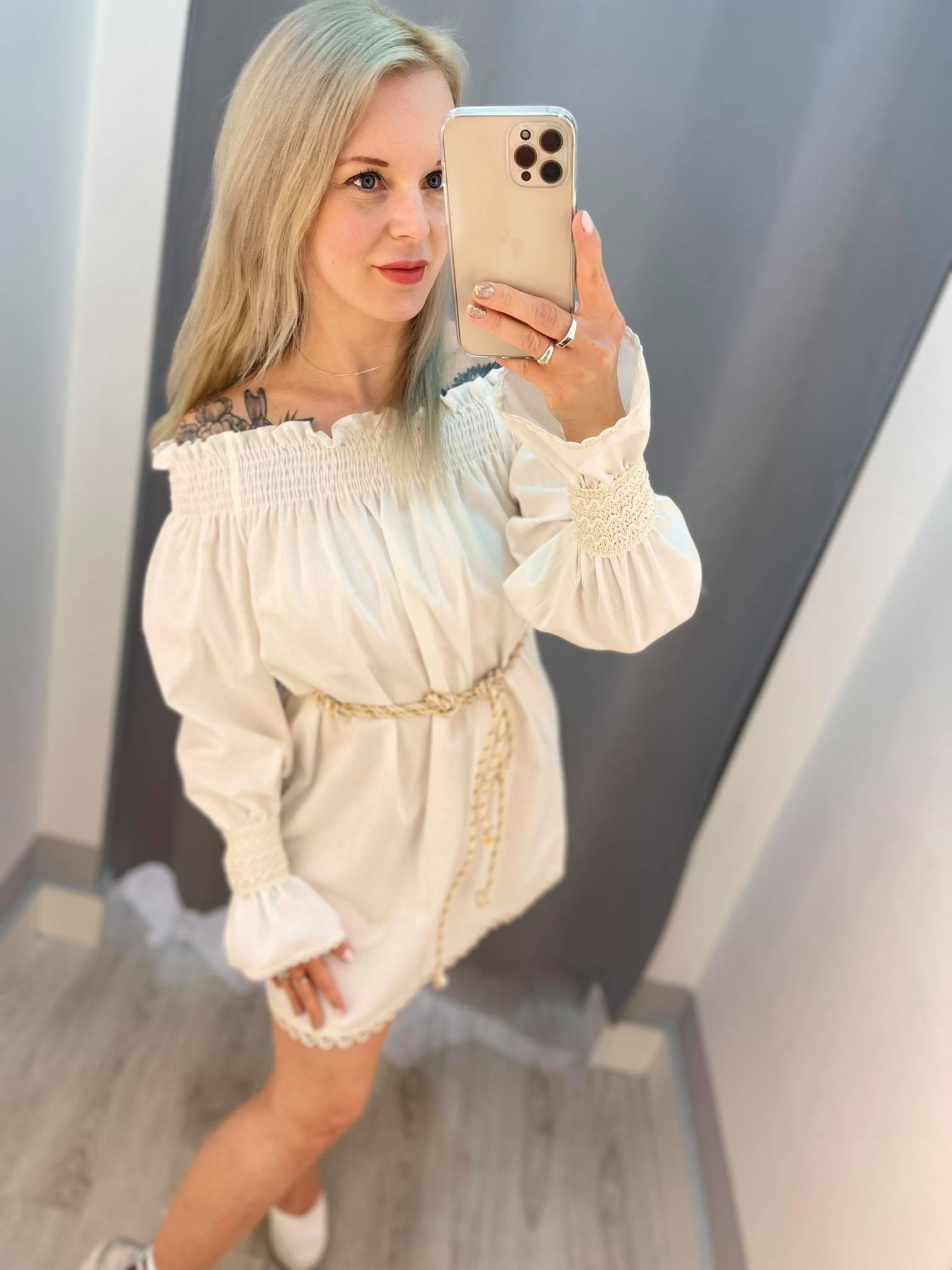 BY O LA LA ! LNIANA SUKIENKA ZE SZNURKIEM ECRU