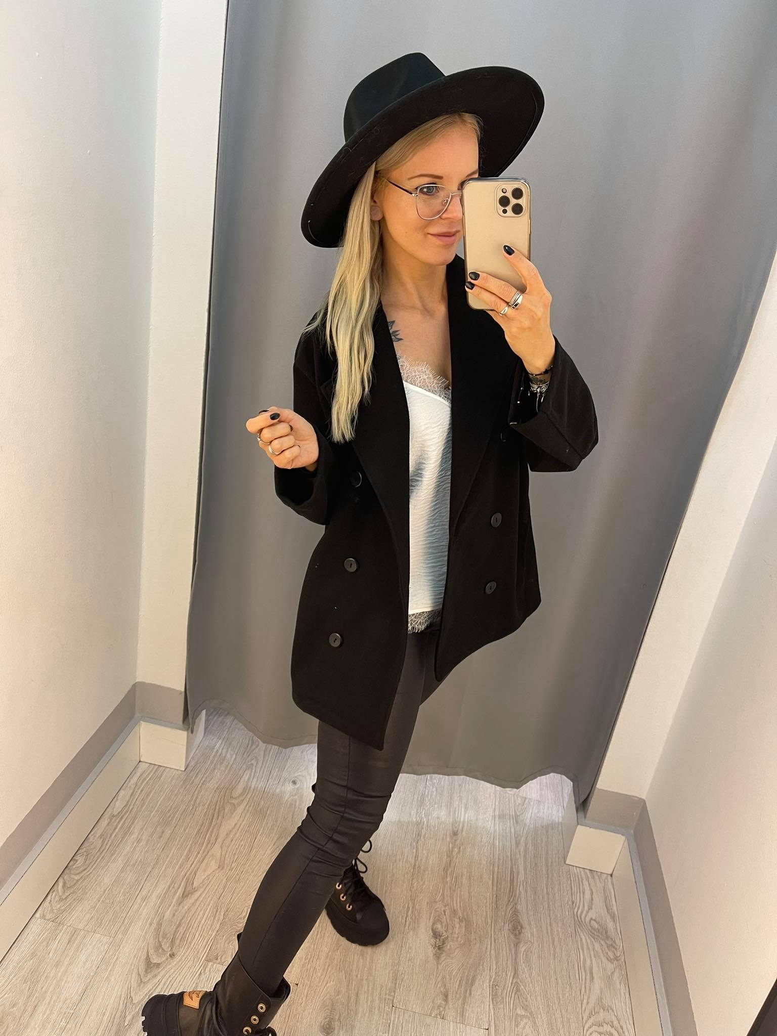 BY O LA LA...! KRÓTKI PŁASZCZ NARZUTKA CZARNY