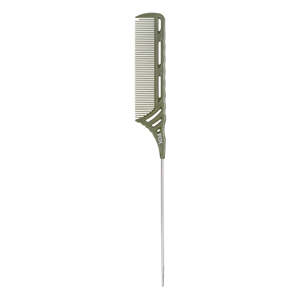 Fox grzebień fryzjerski z metalowym szpikulcem earth colors, oliwkowy