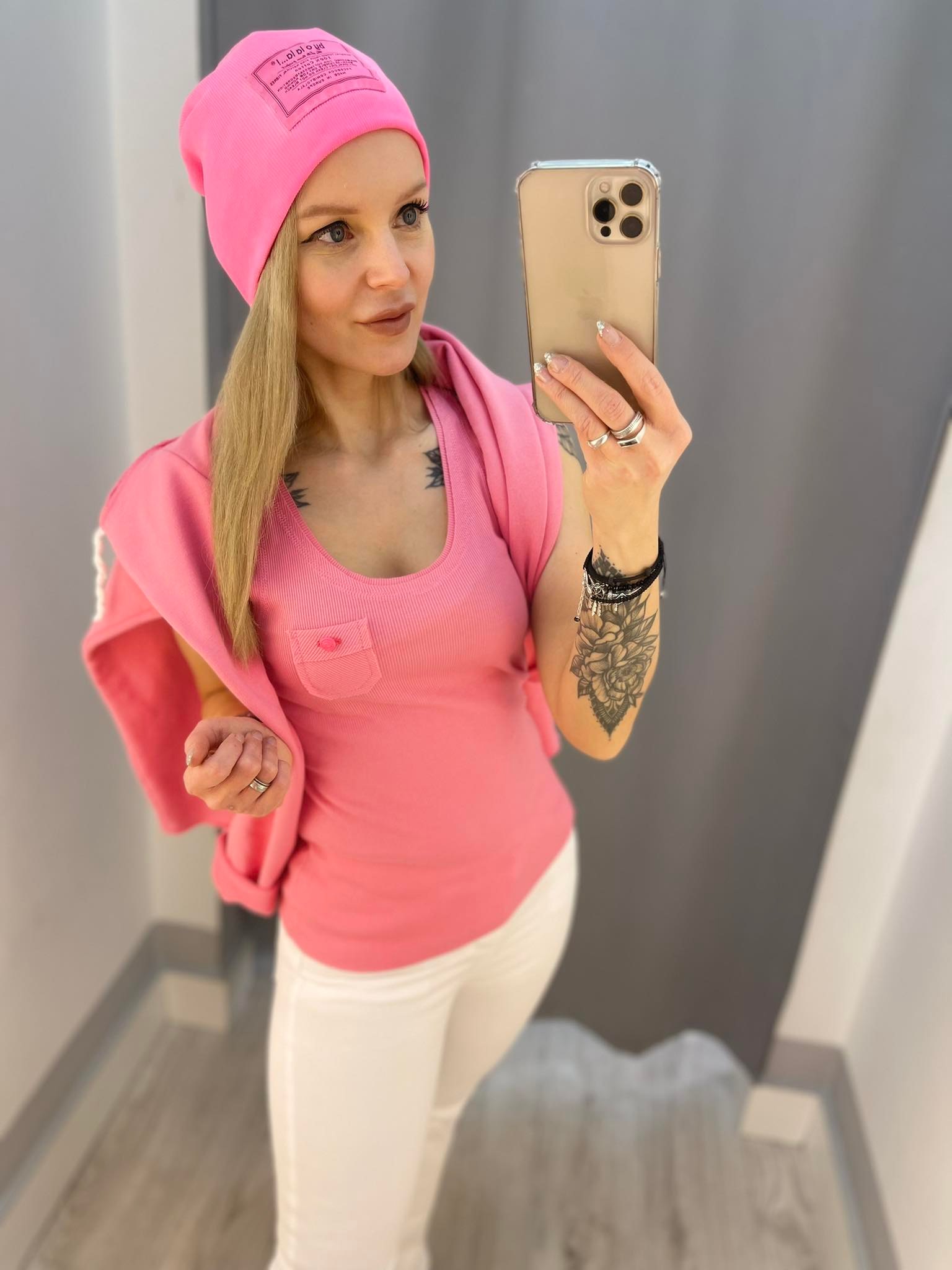 BY O LA LA...! PRĄŻKOWANY TOP GUZIK RÓŻ