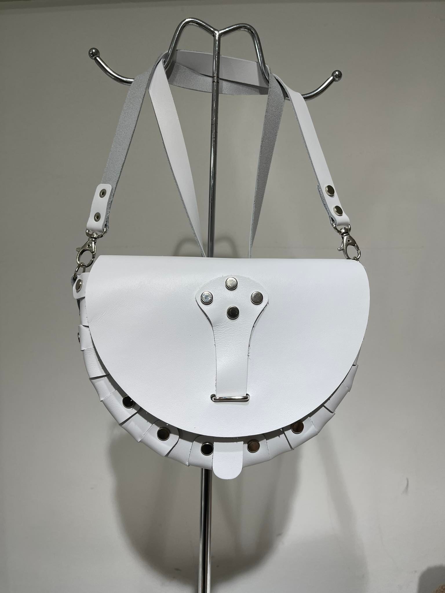 BY O LA LA...! TOREBKA LISTONOSZKA NITOWANA BIAŁA