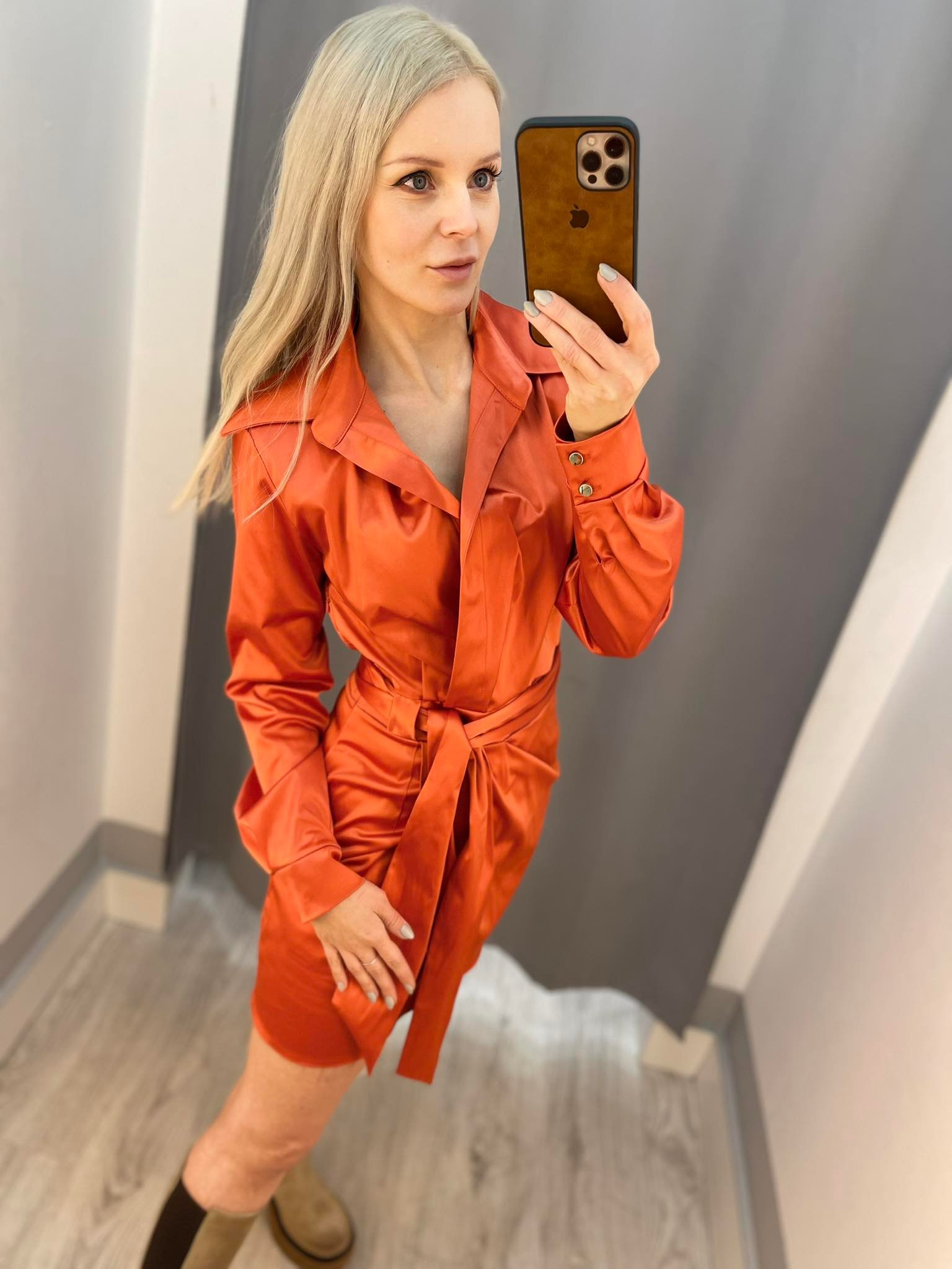 BY O LA LA ! SATYNOWA SUKIENKA MINI NA ZAKŁADKĘ RDZAWA
