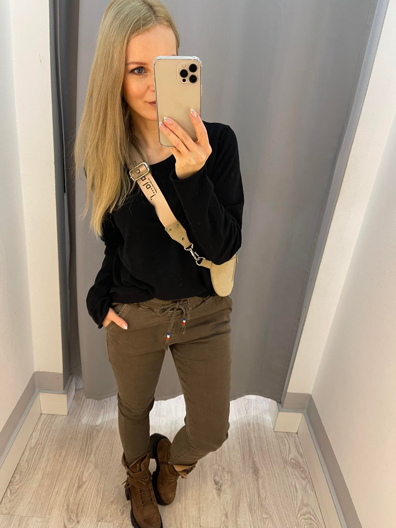 BY O LA LA! SPODNIE NA GUMIE WIĄZANE BRĄZ
