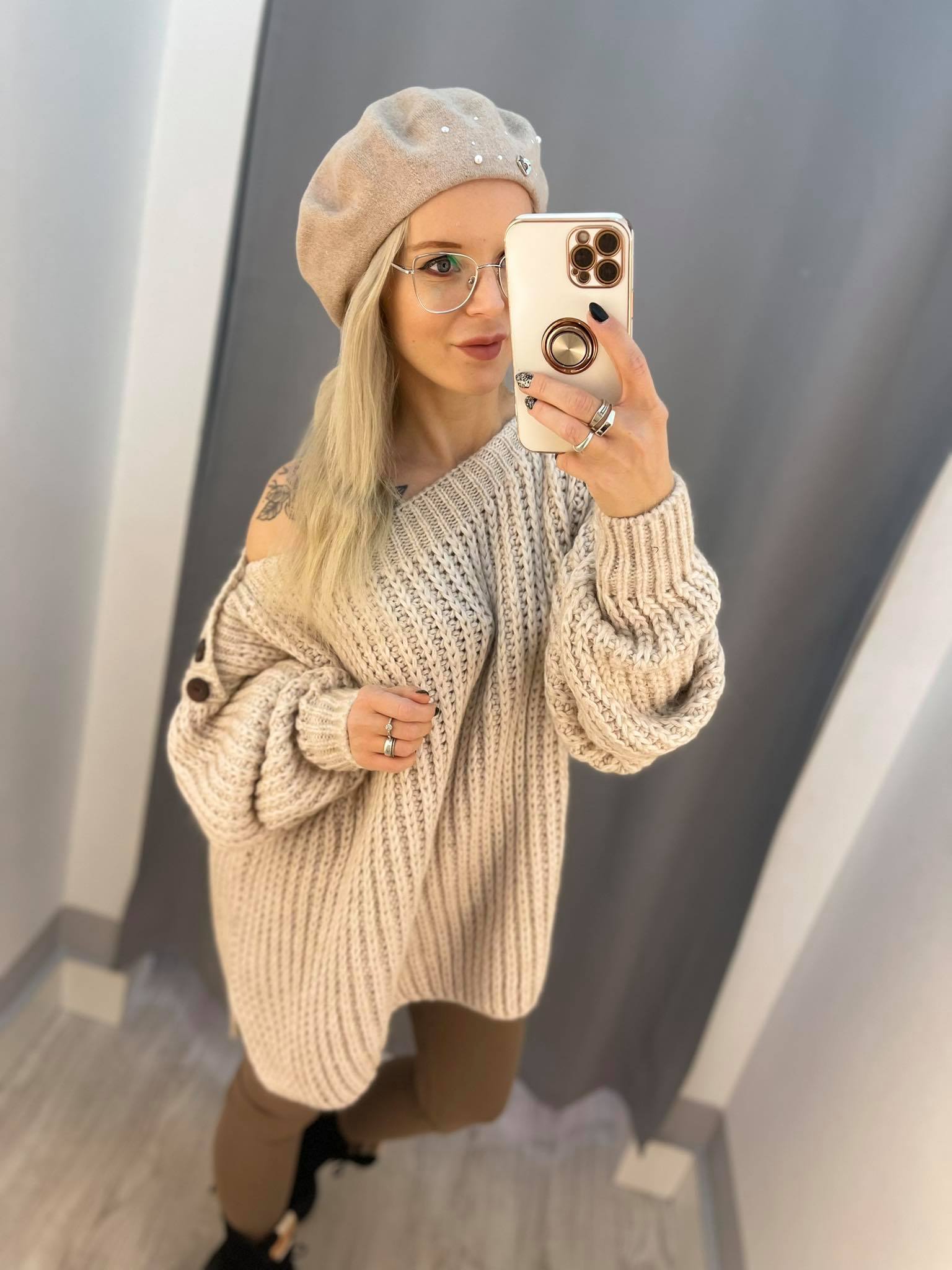 BY O LA LA.. ! OVERSIZOWY SWETER Z GUZIKAMI BEŻ