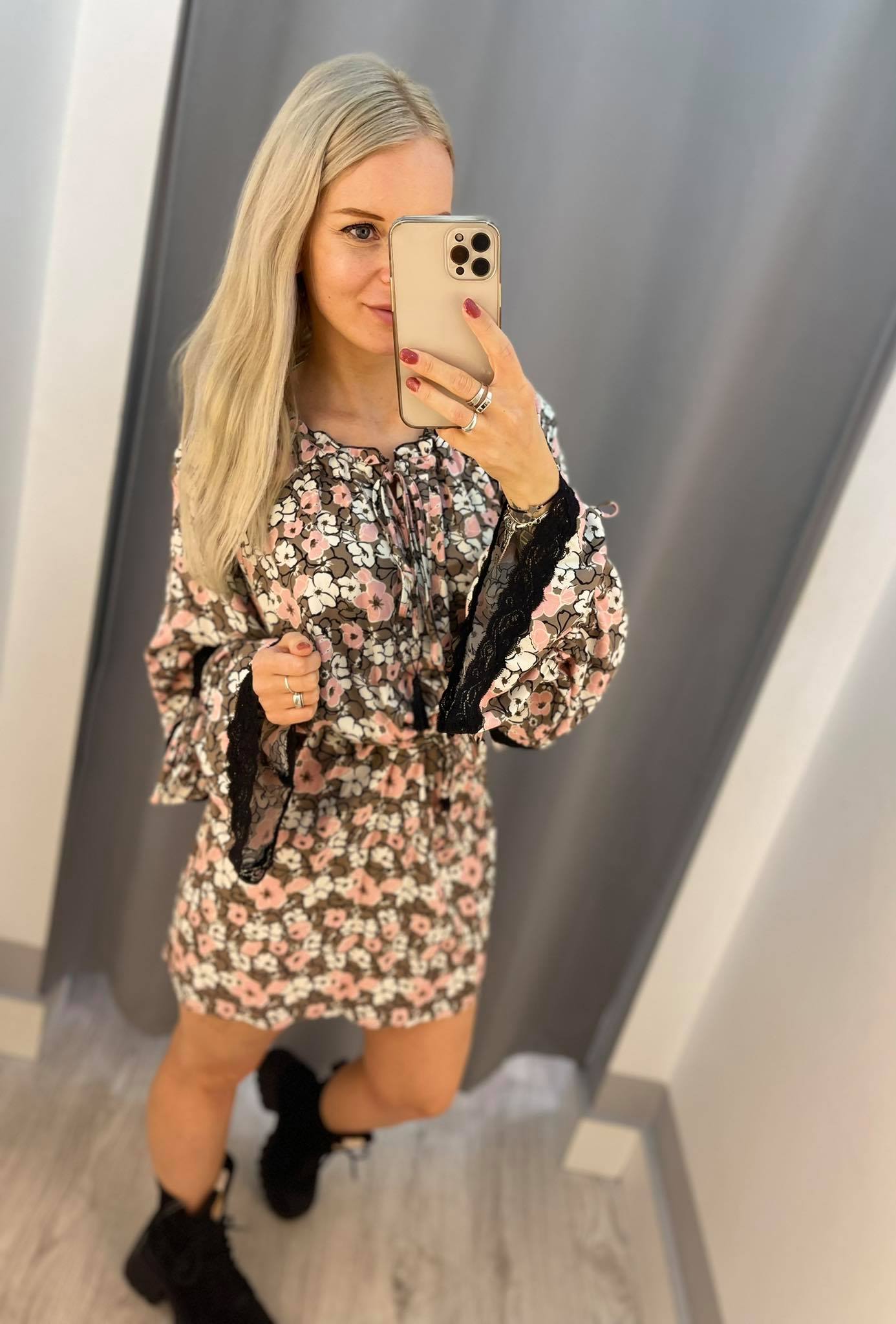 BY O LA LA! SUKIENKA BOHO W KWIATY RÓŻ/FANGO