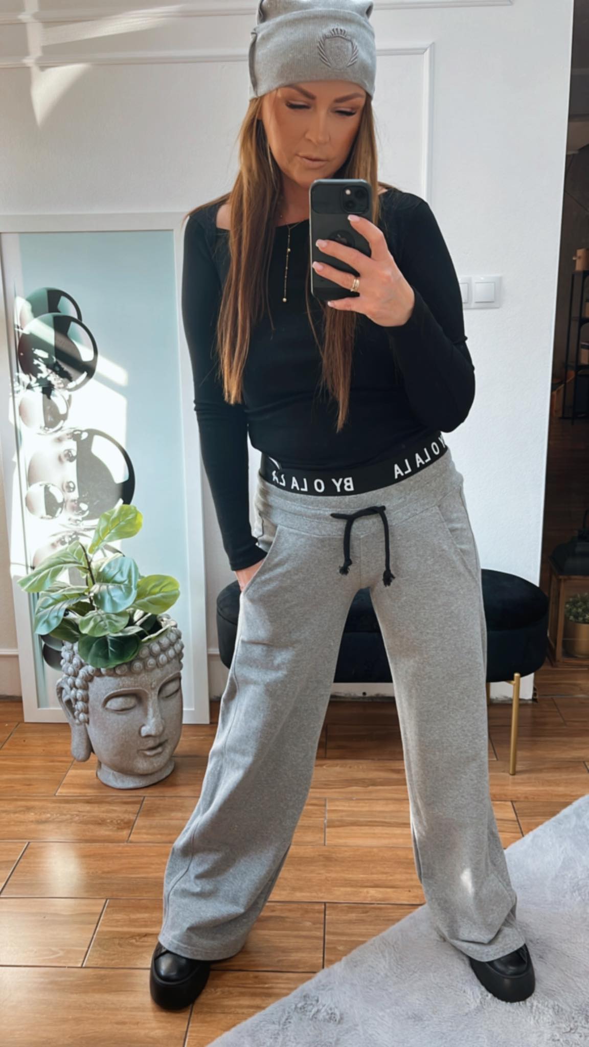 BY O LA LA! DRESOWE SPODNIE Z LOGOWANĄ GUMĄ SZARE