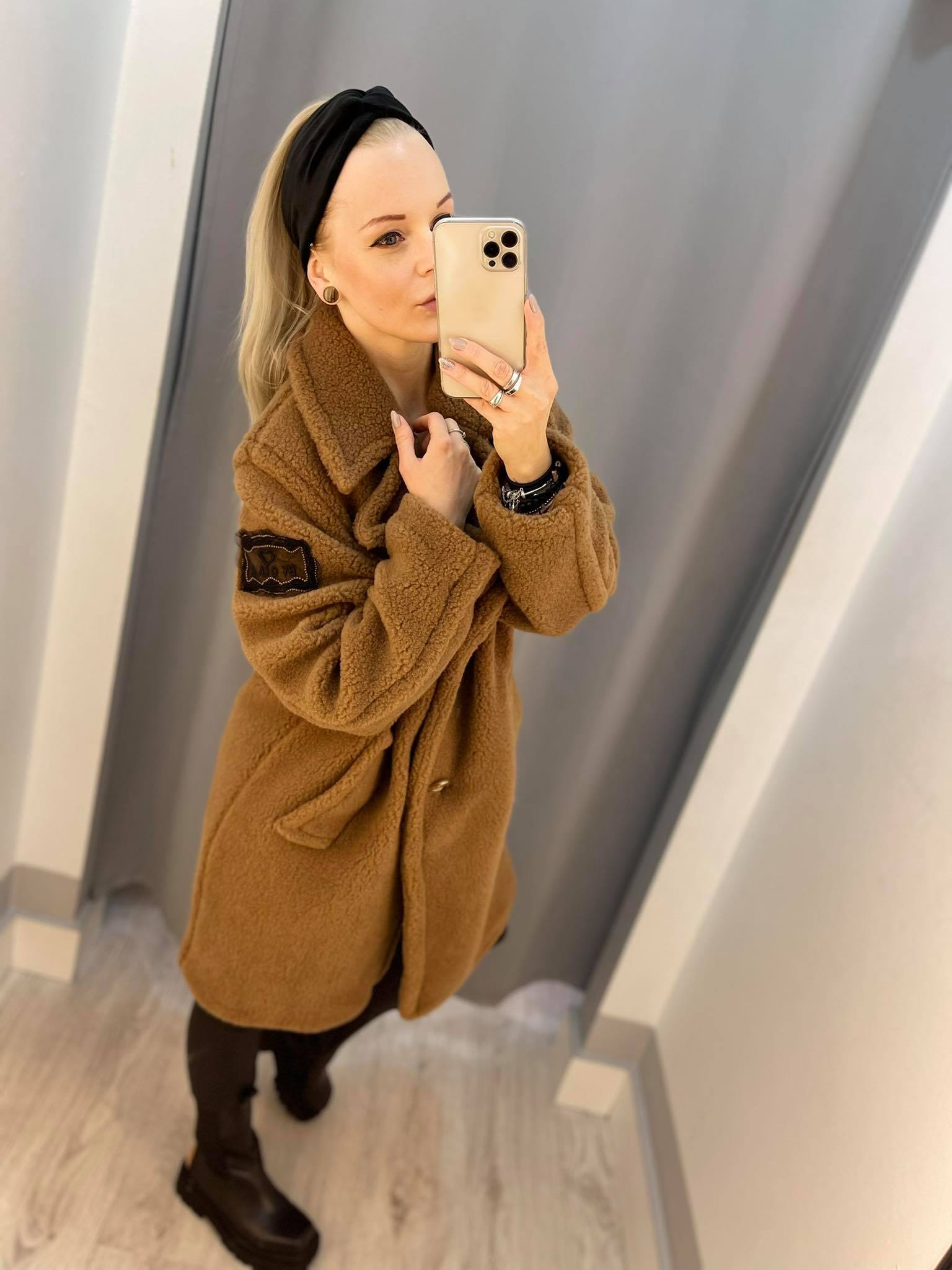 BY O LA LA! PŁASZCZ KOŻUSZEK Z LOGIEM CAMEL