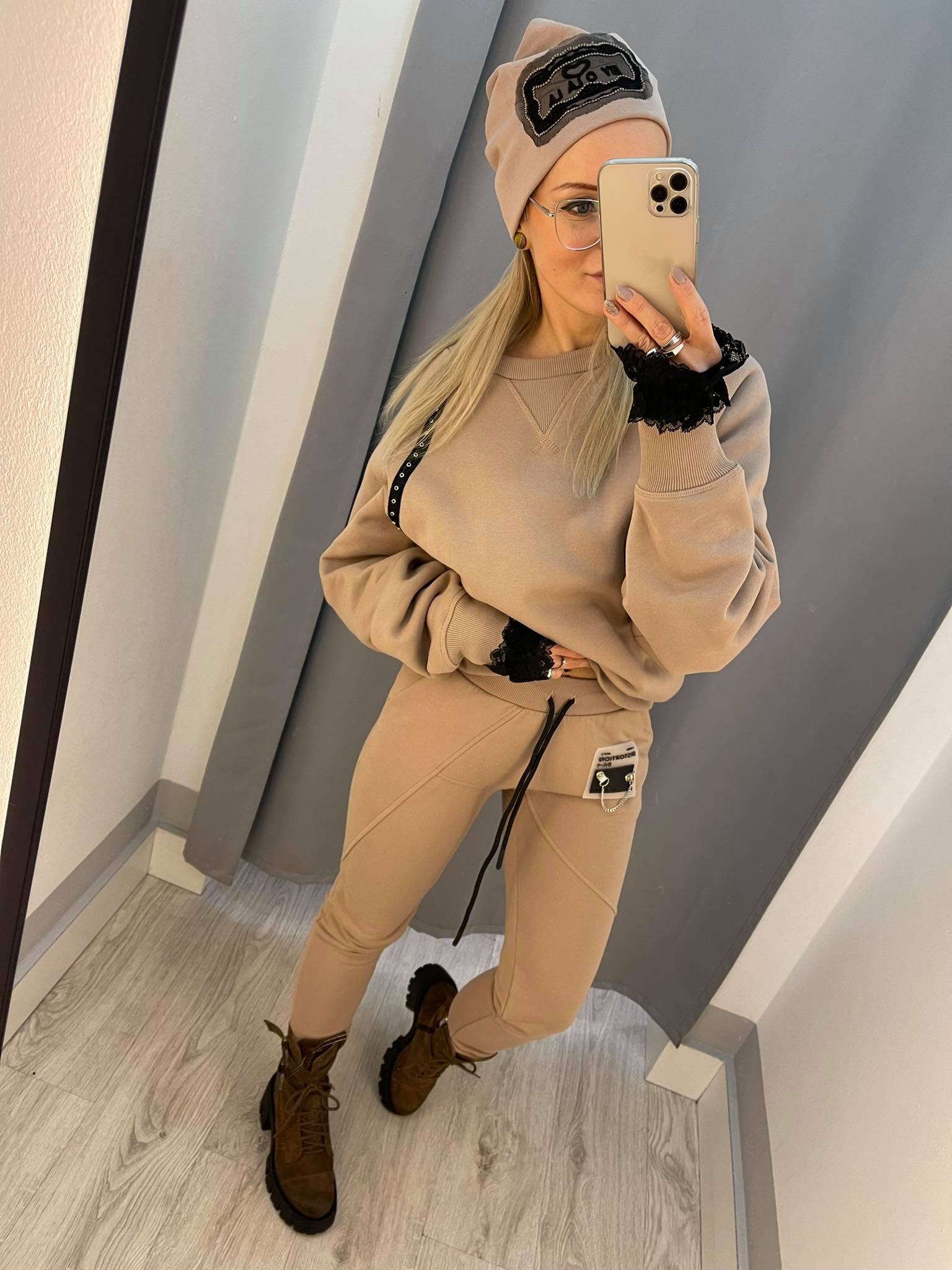 BY O LA LA ! SPODNIE DRESOWE Z ŁAŃCUSZKIEM BEŻ