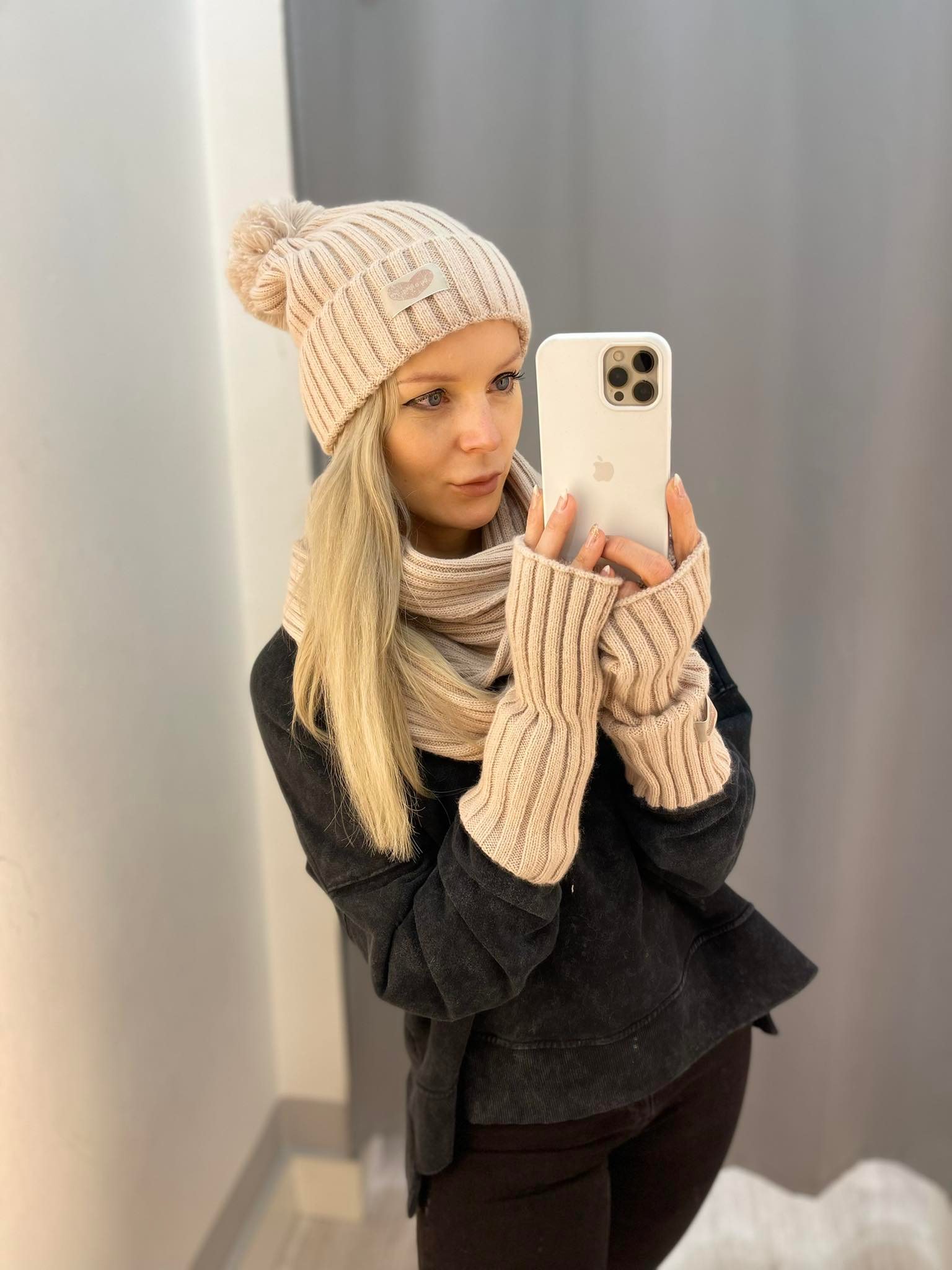 BY O LA LA...! ZIMOWA CZAPKA Z POMPONEM HEART BEŻ