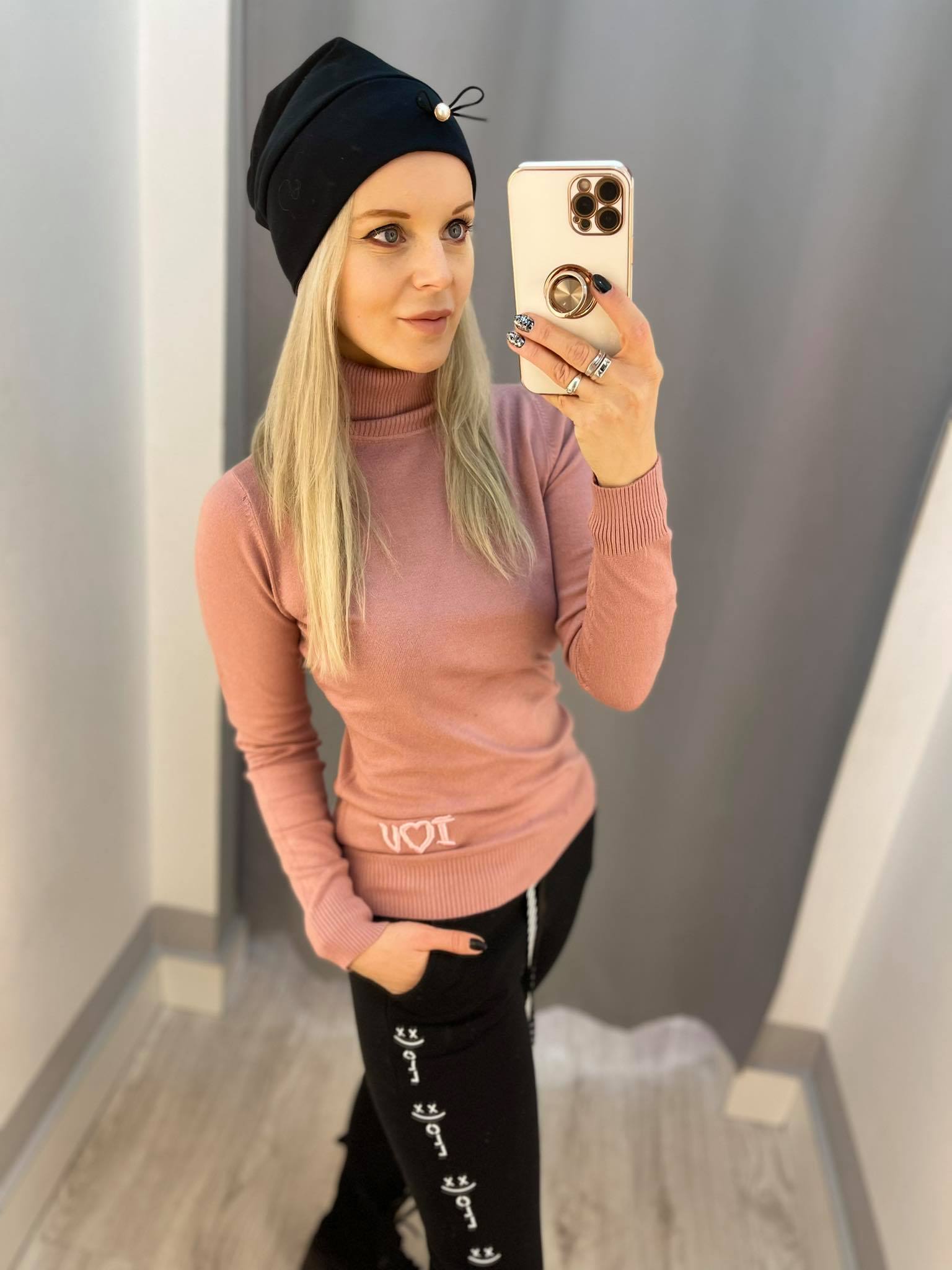 BY O LA LA...! SWETER GOLF Z NASZYWKĄ RÓŹ