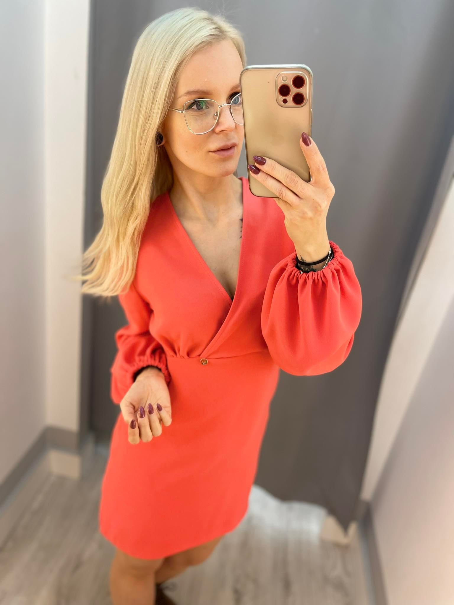 BY O LA LA ! SUKIENKA Z DEKOLTEM V KORALOWA