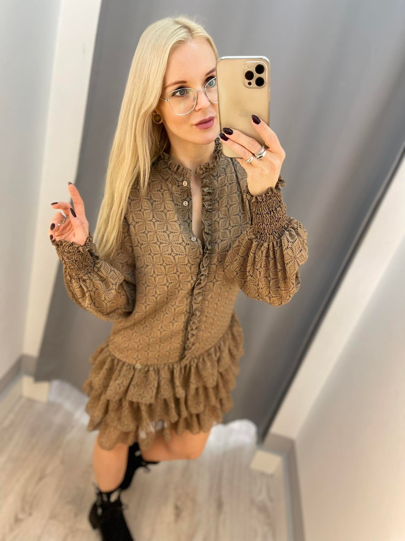 BY O LA LA! RETRO SUKIENKA Z FALBANAMI BEŻ