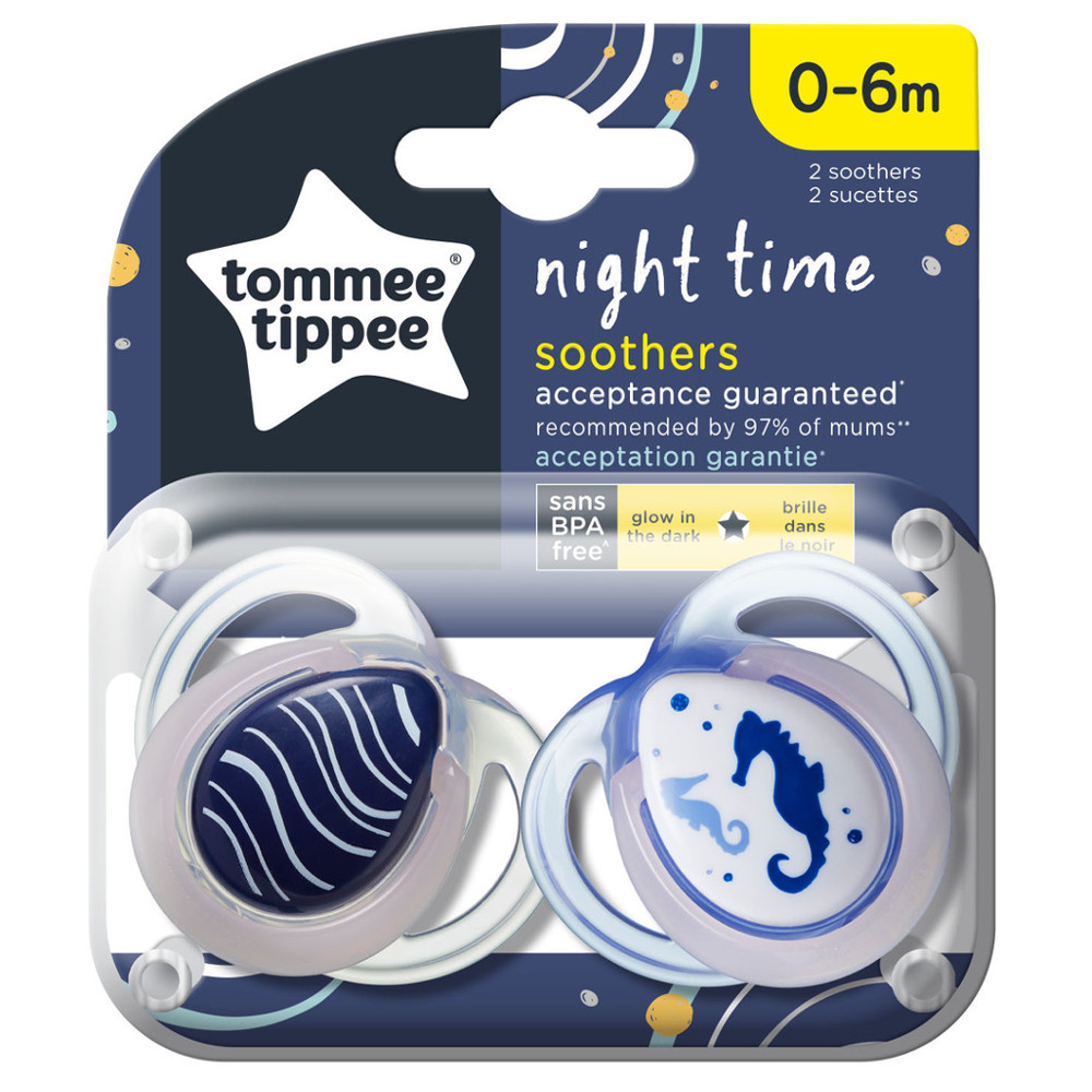 Tommee tippee smoczki uspokajające 0-6m night time różowe