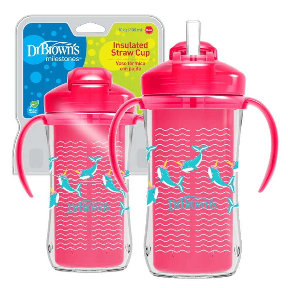 Dr. brown's bidon termiczny ze słomką 300ml różowy