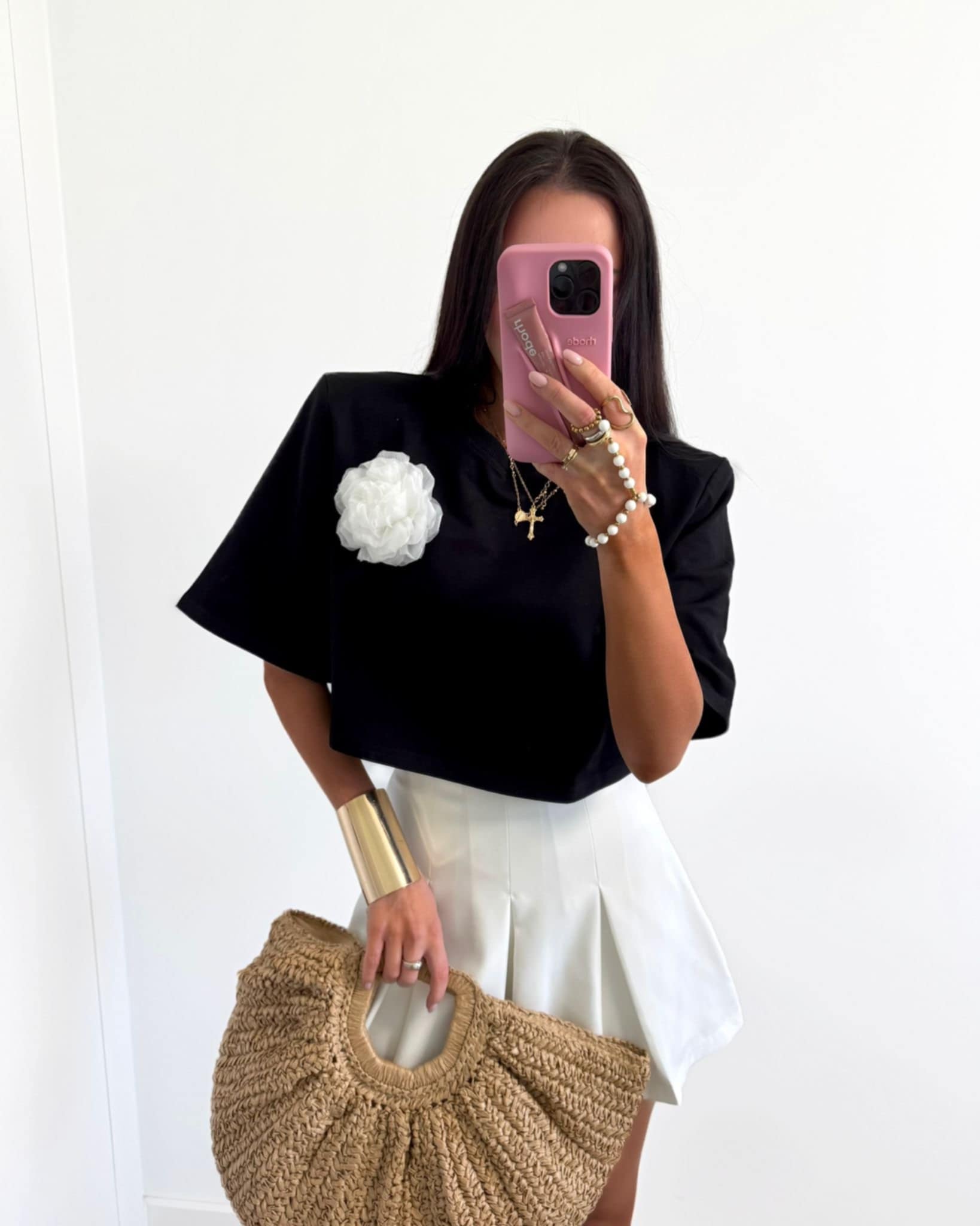 LA MILLA KRÓTKI T-SHIRT PUDEŁKO Z KWIATEM CZERŃ/BIEL