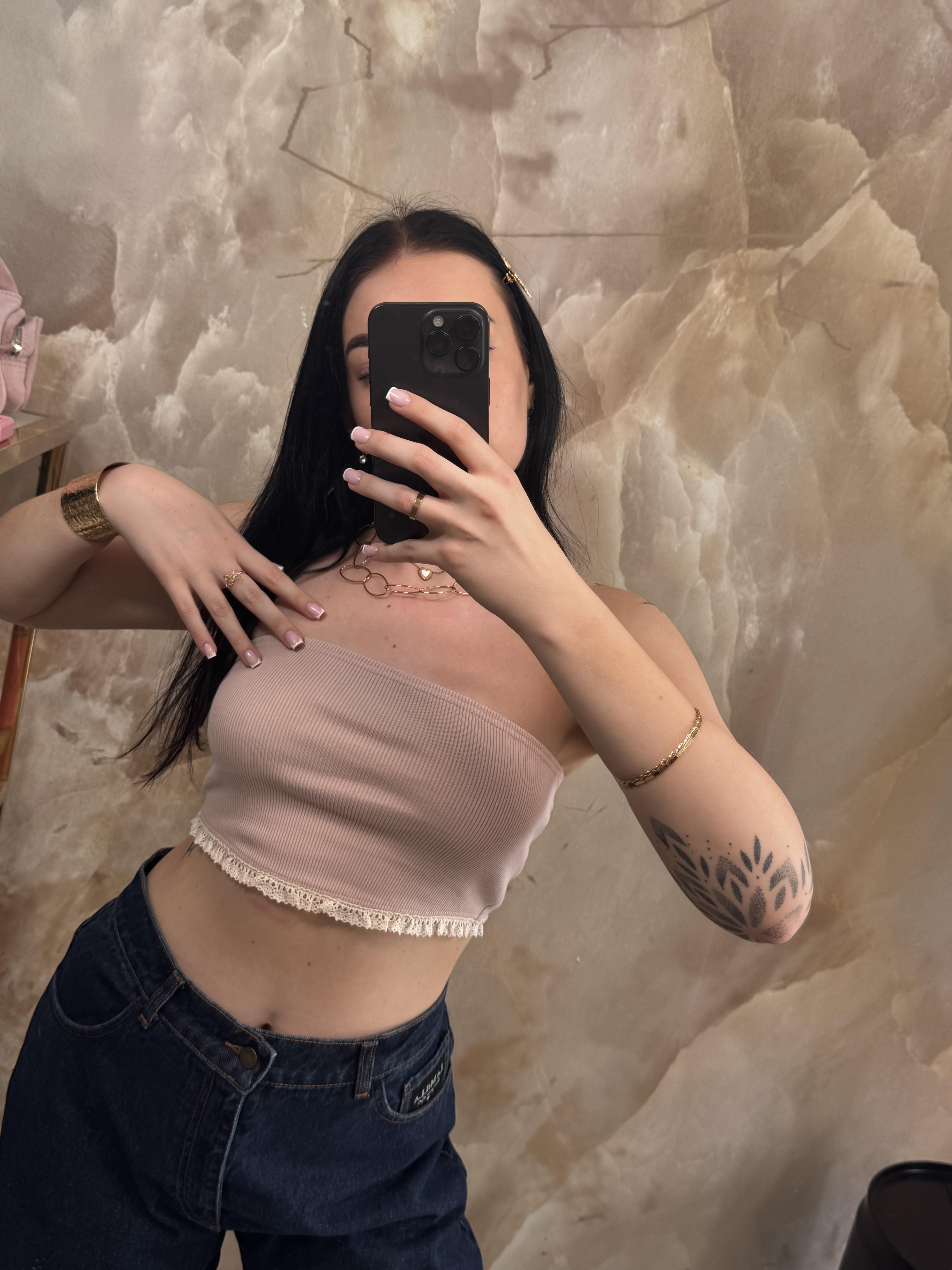 BY O LA LA...! KRÓTKI TOP OPASKA Z KORONKĄ RÓŻ