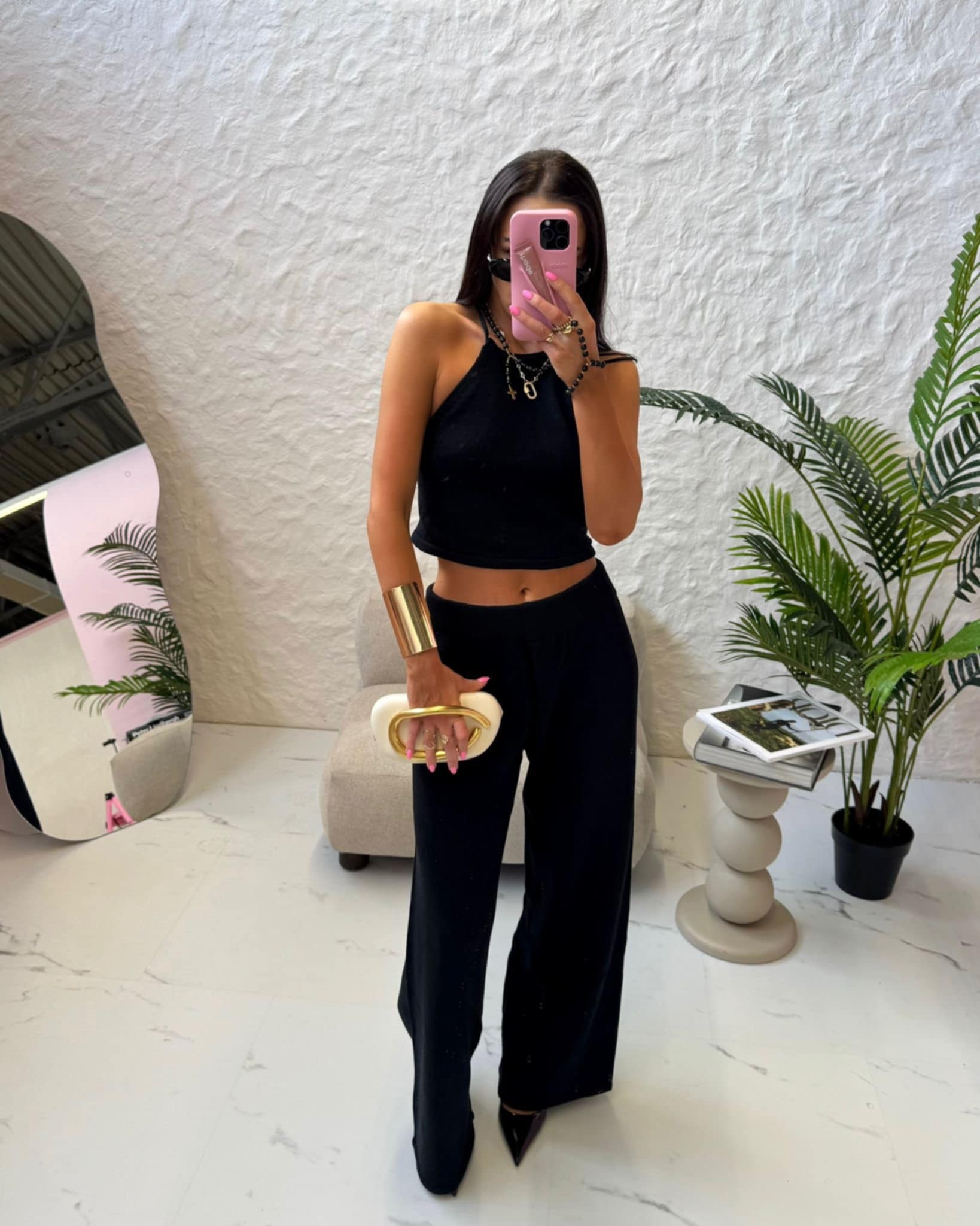 LA MILLA DZIANINOWY KOMPLET WIĄZANY TOP + SPODNIE CZARNY