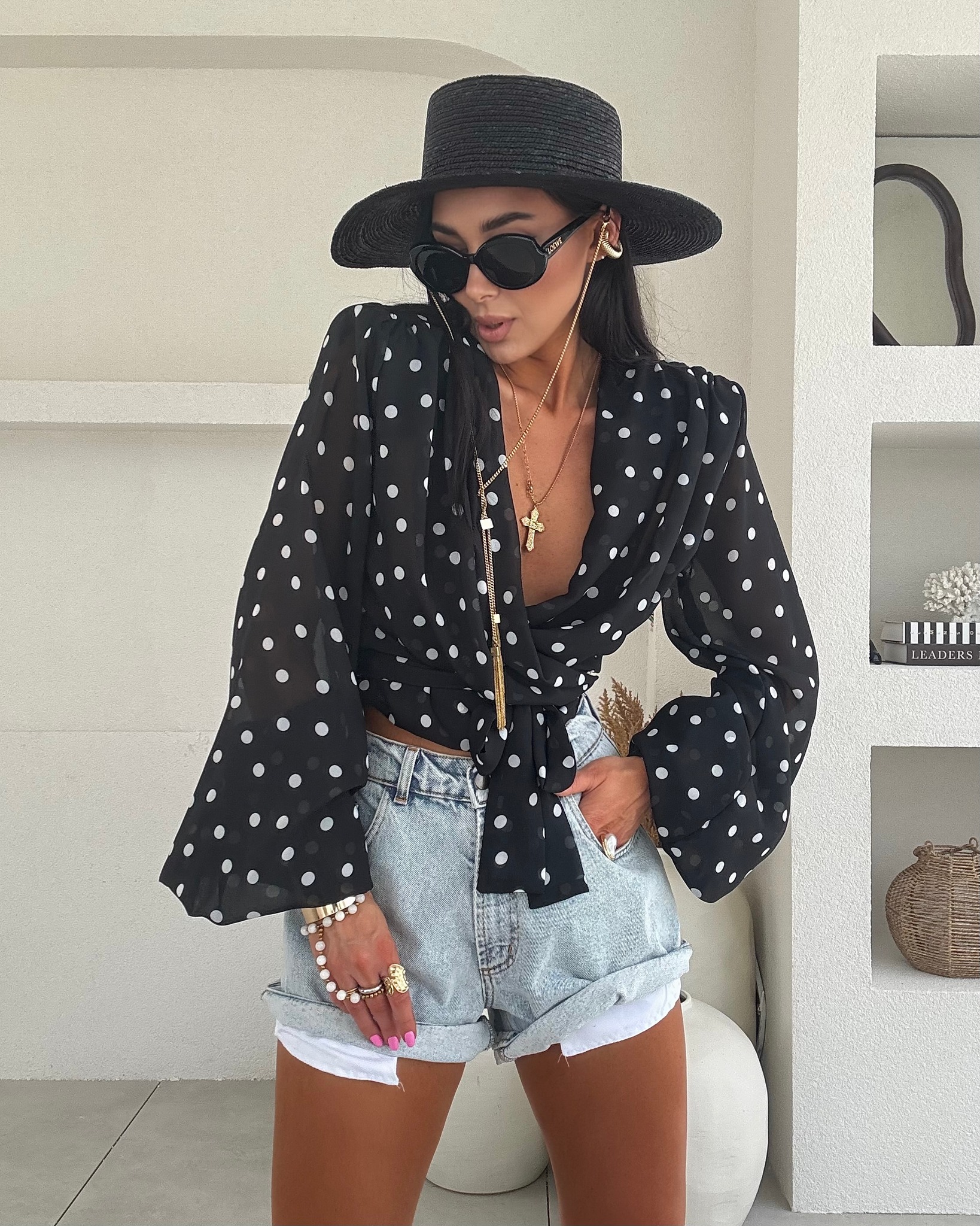 LA MILLA WIĄZANA BLUZKA KOSZULA W GROCHY CZARNA