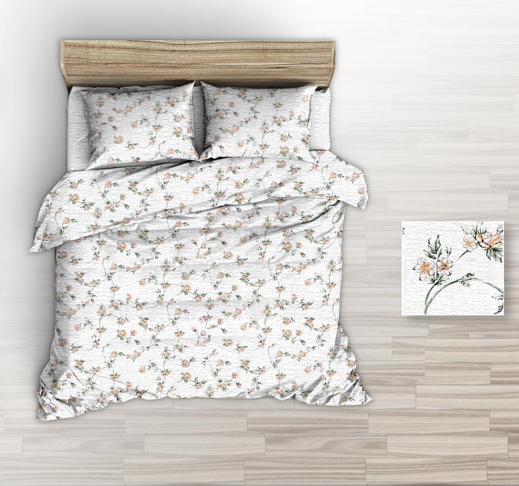 Pościel z kory 200x220 biała różowa granatowa beżowa kwiatowy rzucik
