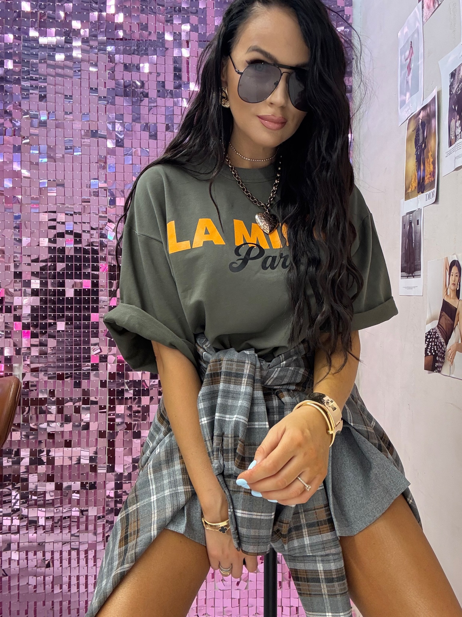 LA MILLA BLUZKA T-SHIRT OVERSIZE PARIS KHAKI/POMARAŃCZ