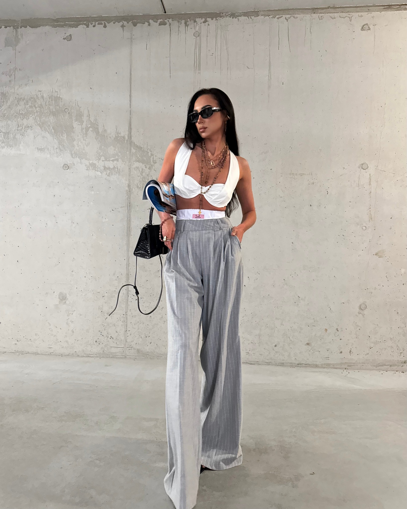 LA MILLA SPODNIE WIDE LEG Z BIAŁĄ LOGOWANĄ GUMĄ SZARE