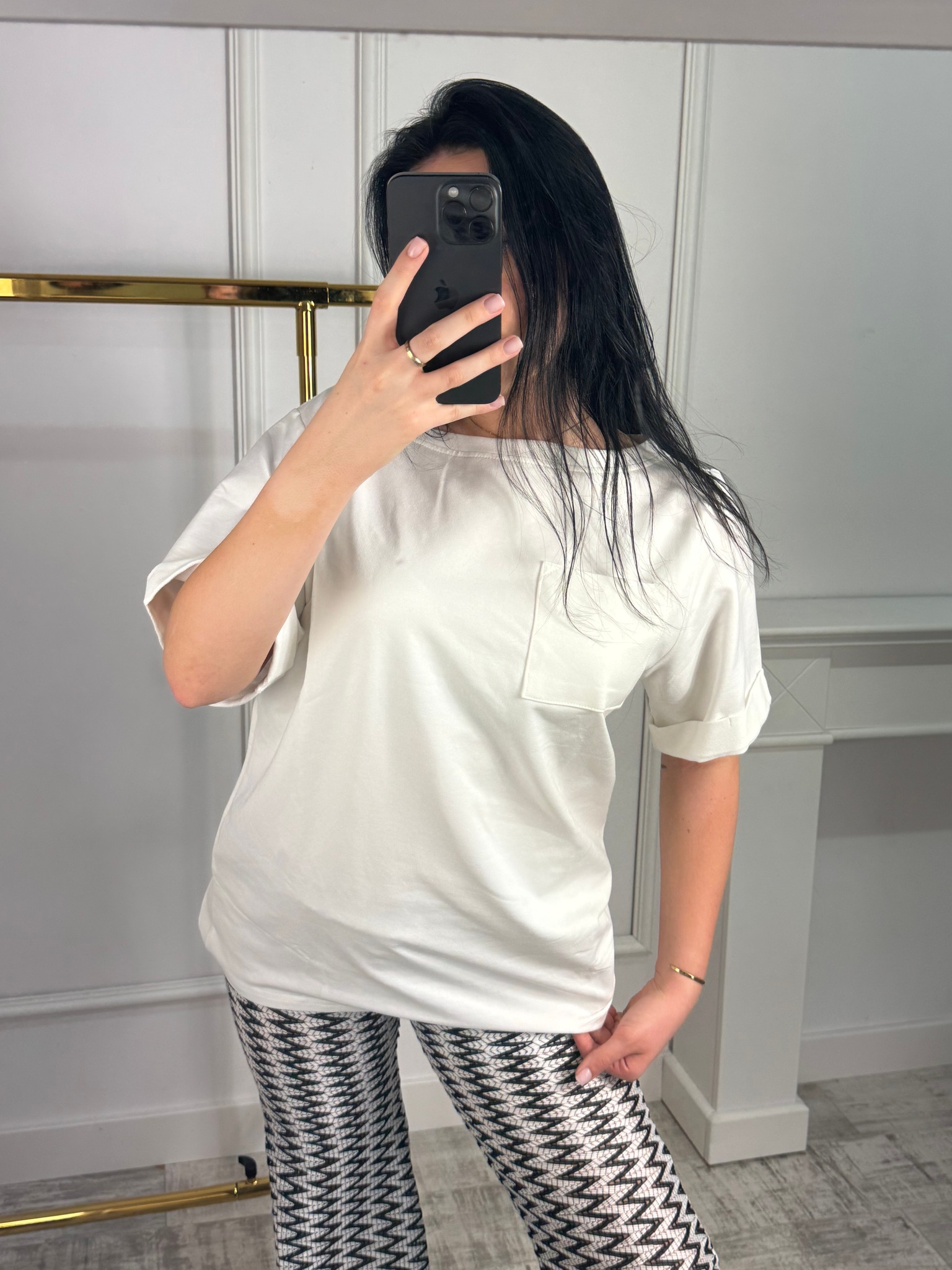 LA MILLA BLUZKA T-SHIRT OVERSIZE Z KIESZONKĄ BIAŁA