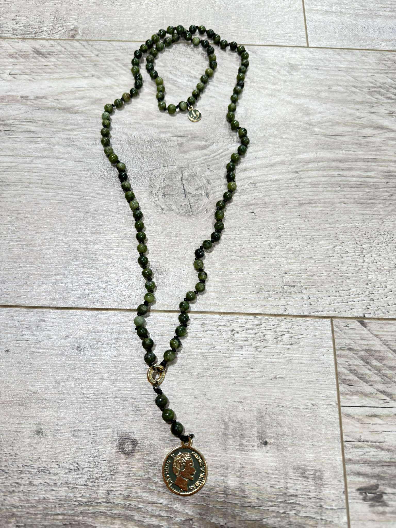 BY O LA LA ! WISIOR NASZYJNIK RÓŻANIEC Z MONETAMI MATCHA (ZIELONY)