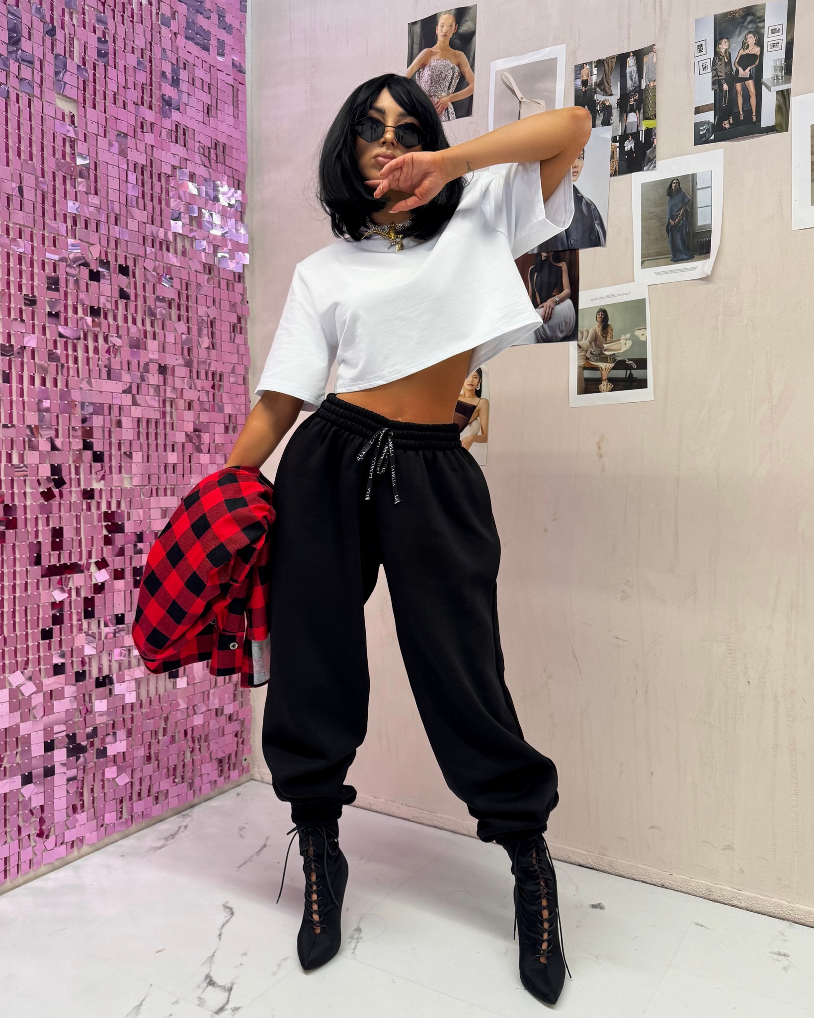 LA MILLA SPODNIE WIDE LEG Z BIAŁĄ LOGOWANĄ GUMĄ CZARNE