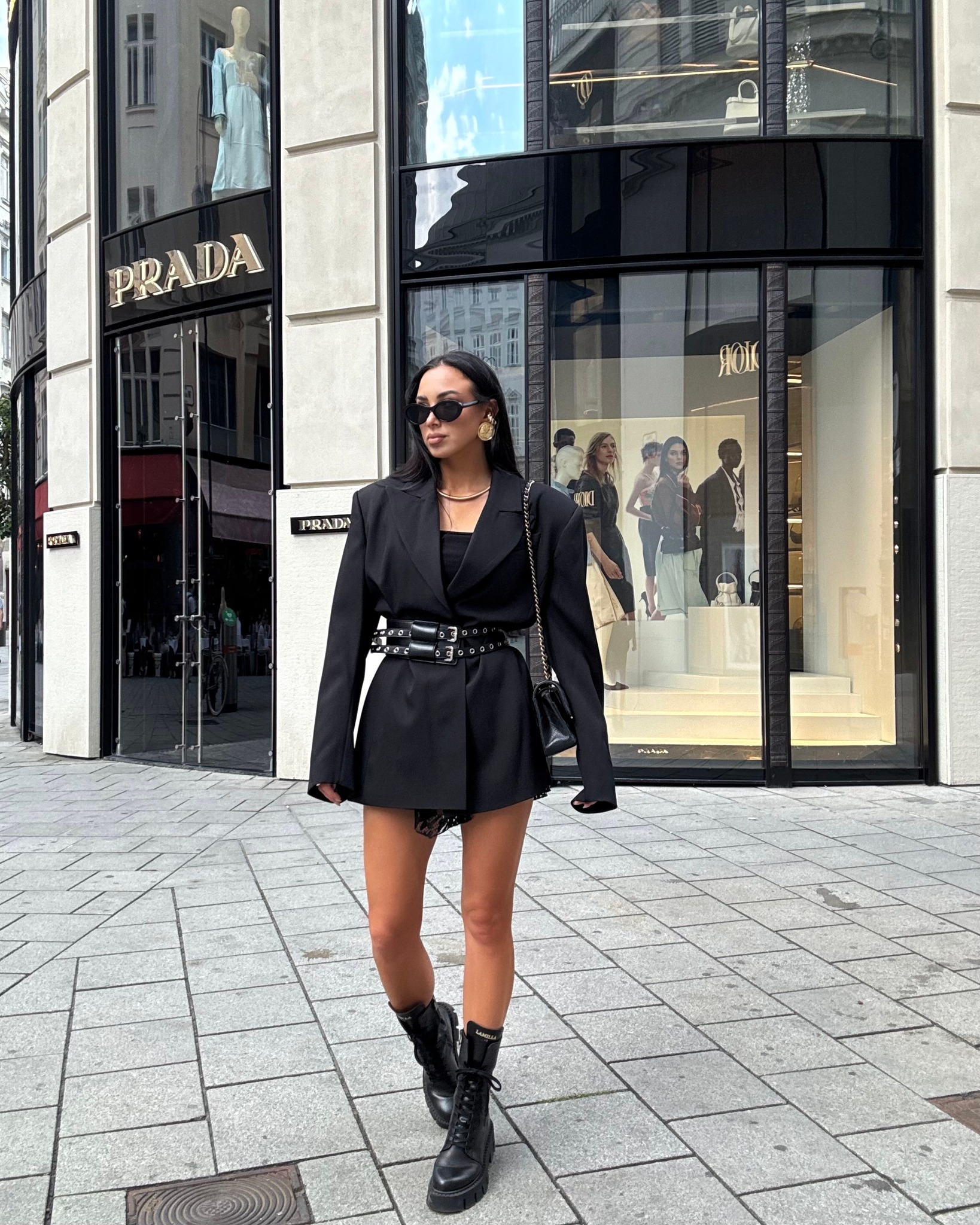 LA MILLA MARYNARKA PREMIUM ZE SKÓRZANYM PASKIEM CZARNA