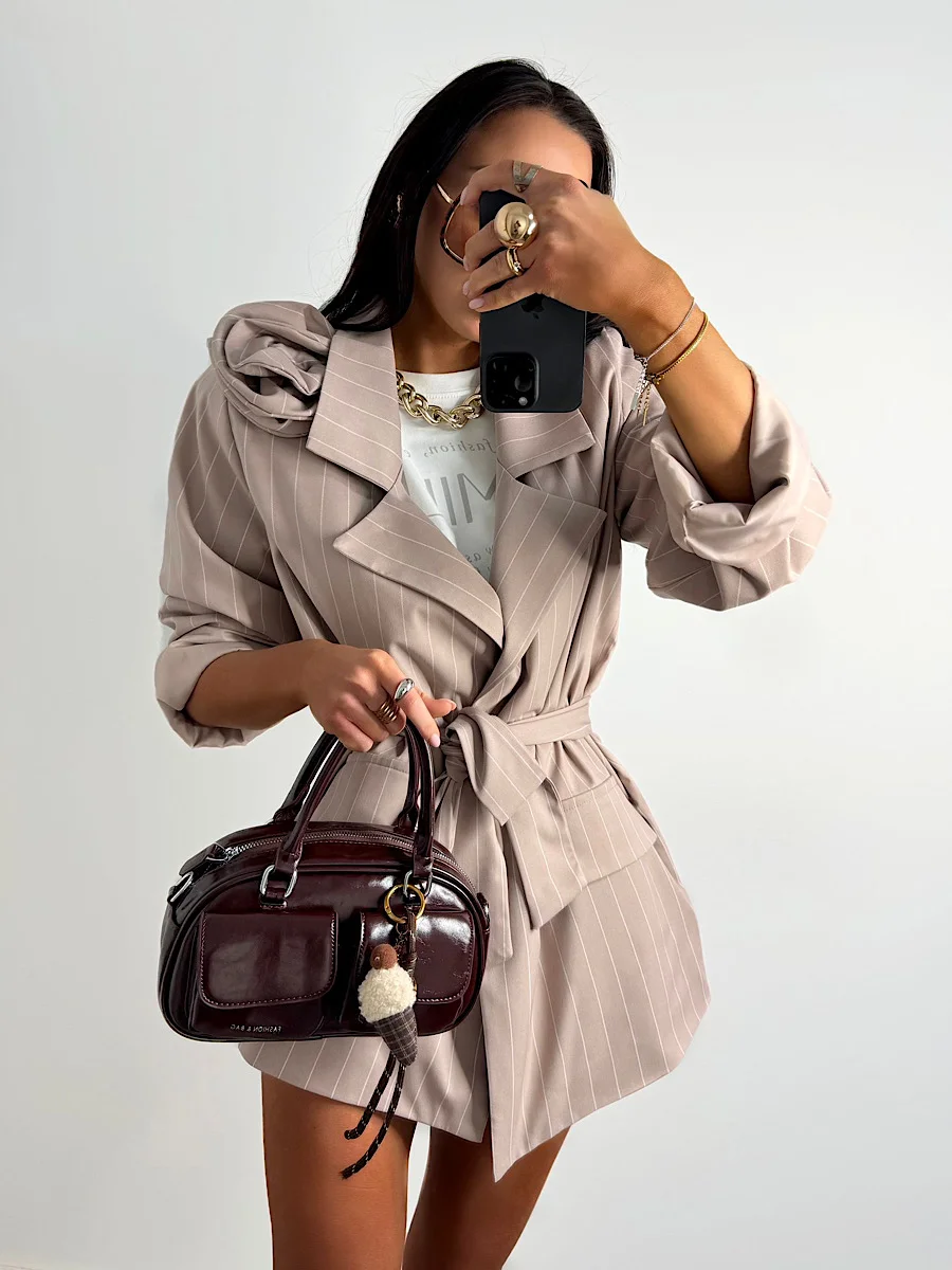 LA MILLA OVERSIZOWA MARYNARKA W PASKI Z RÓŻĄ BEŻ