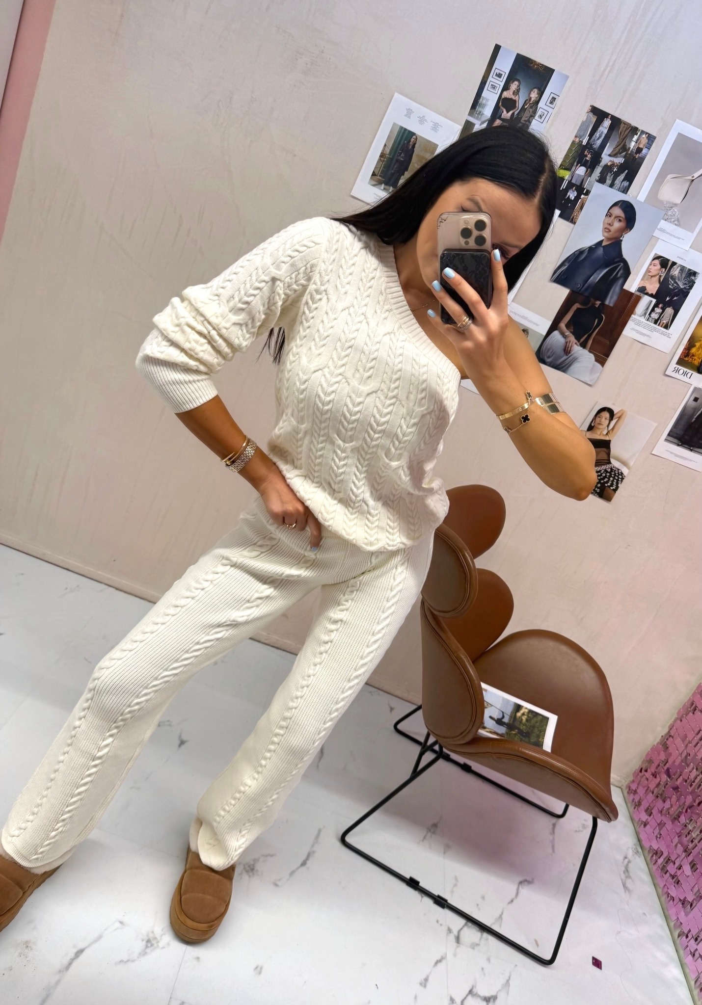 LA MILLA SWETERKOWY KOMPLET WARKOCZ ŚMIETANA